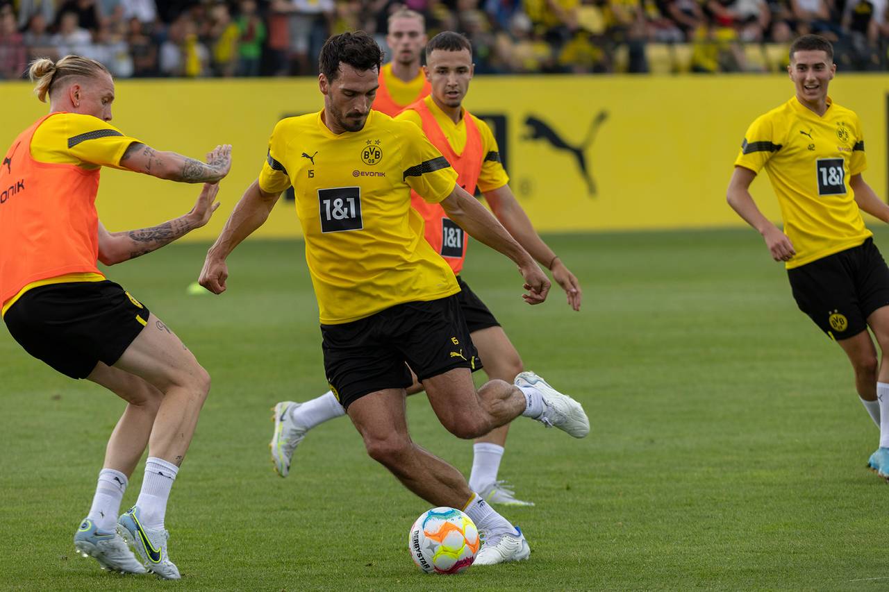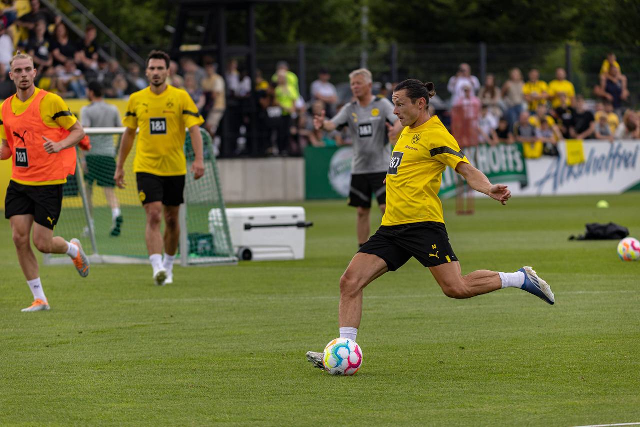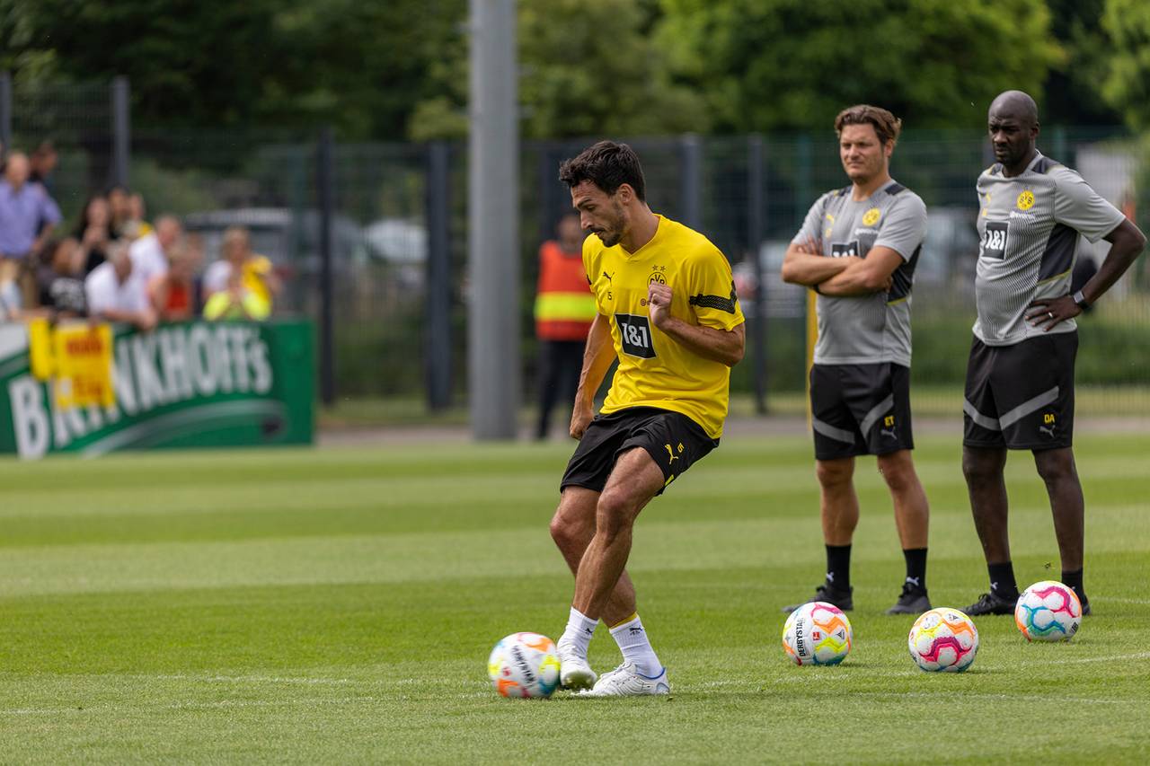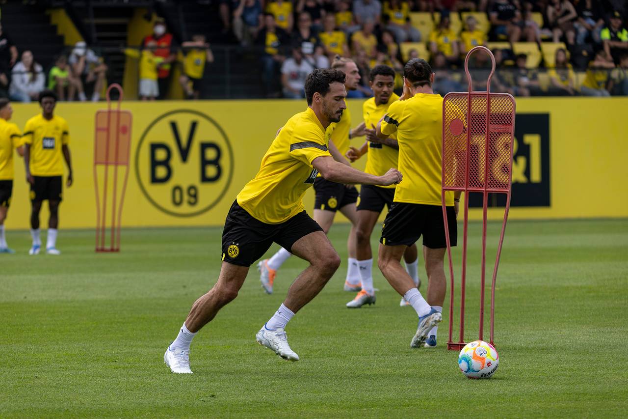 Der BVB hat vor 1300 Fans das erste Mannschaftstraining nach der Sommerpause absolviert. Viele Neuzugänge und Nationalspieler fehlten dabei noch, da sie erst in einer guten Woche ins Training einsteigen werden.