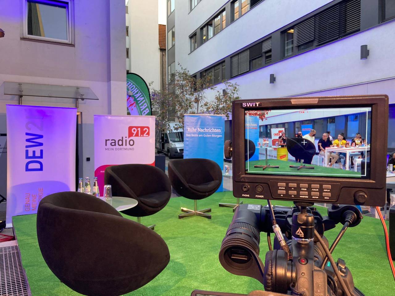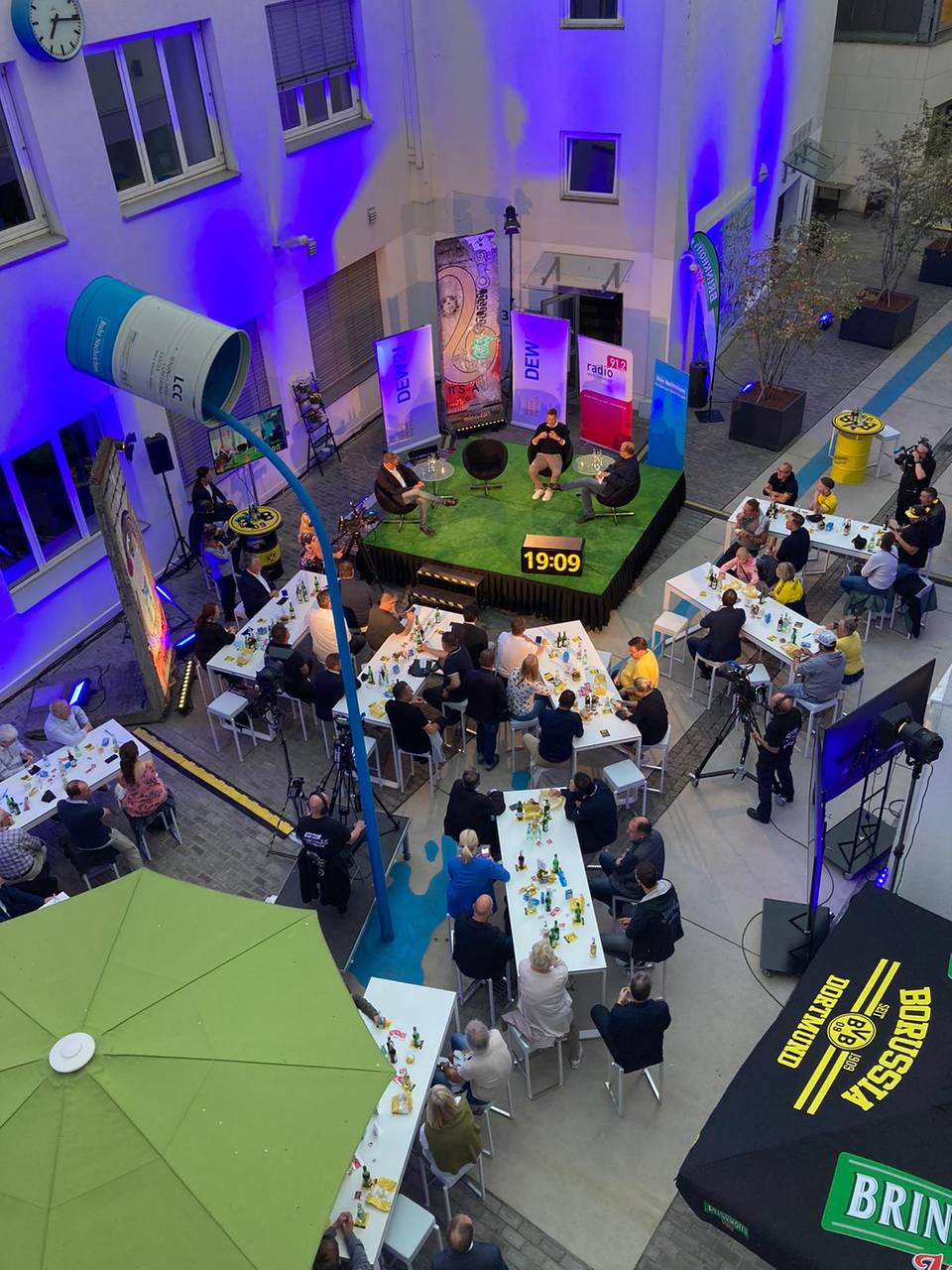 Bei weit über 20 Grad, blauem Himmel und Sonnenschein kann man den Schwarzgelben Talk schon mal zur Open-Air-Veranstaltung machen! Gestern gabs entspannte Spätsommer-Atmosphäre im Innenhof von Radio 91.2 und den Ruhr Nachrichten. Auf der Bühne saßen Sebastian Kehl und Otto Addo. Radio 91.2-Reporter Björn Pinno fasst den Abend zusammen.