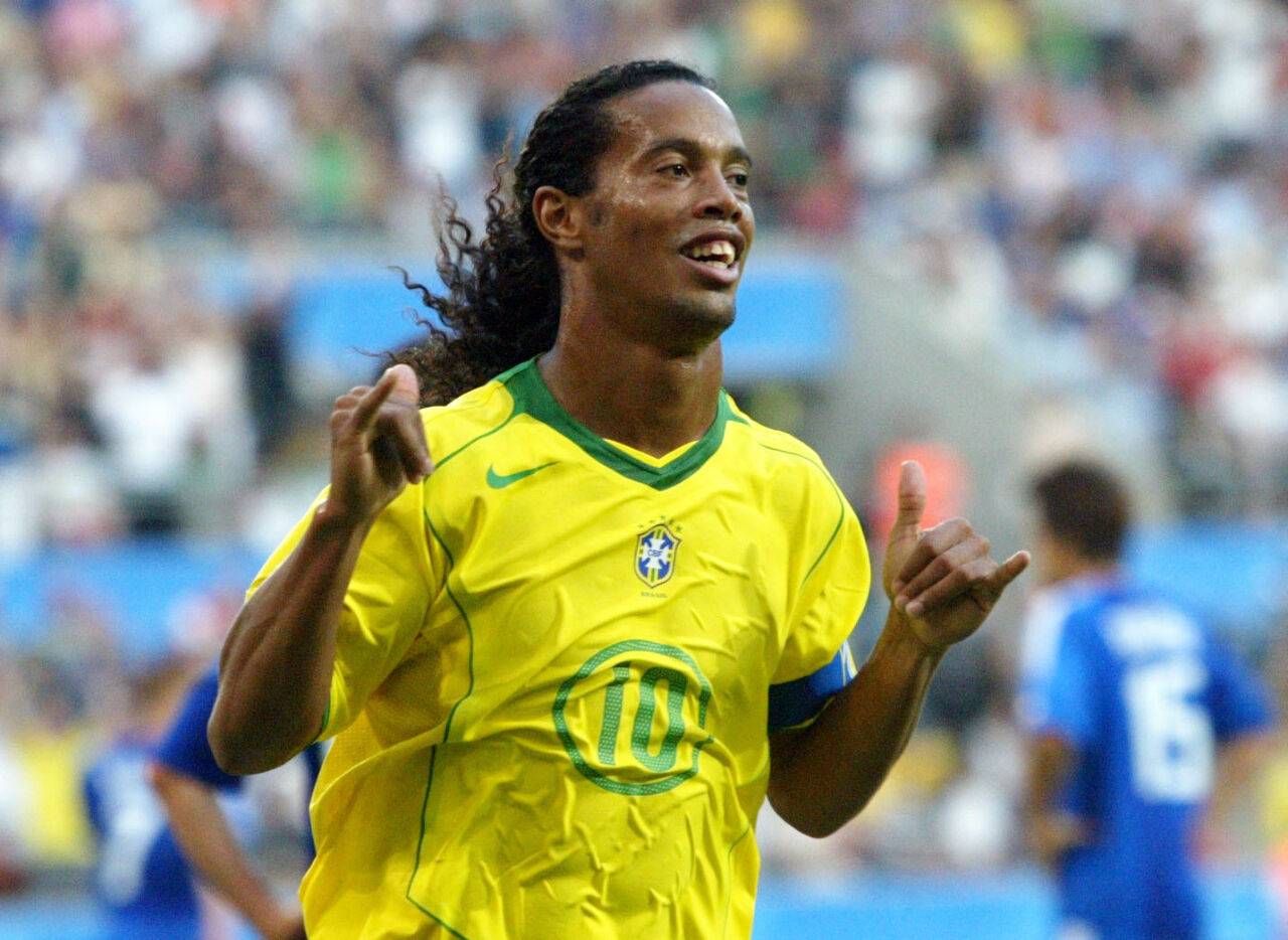 Ronaldinho feiert einen Treffer gegen Japan im Jahr 2005