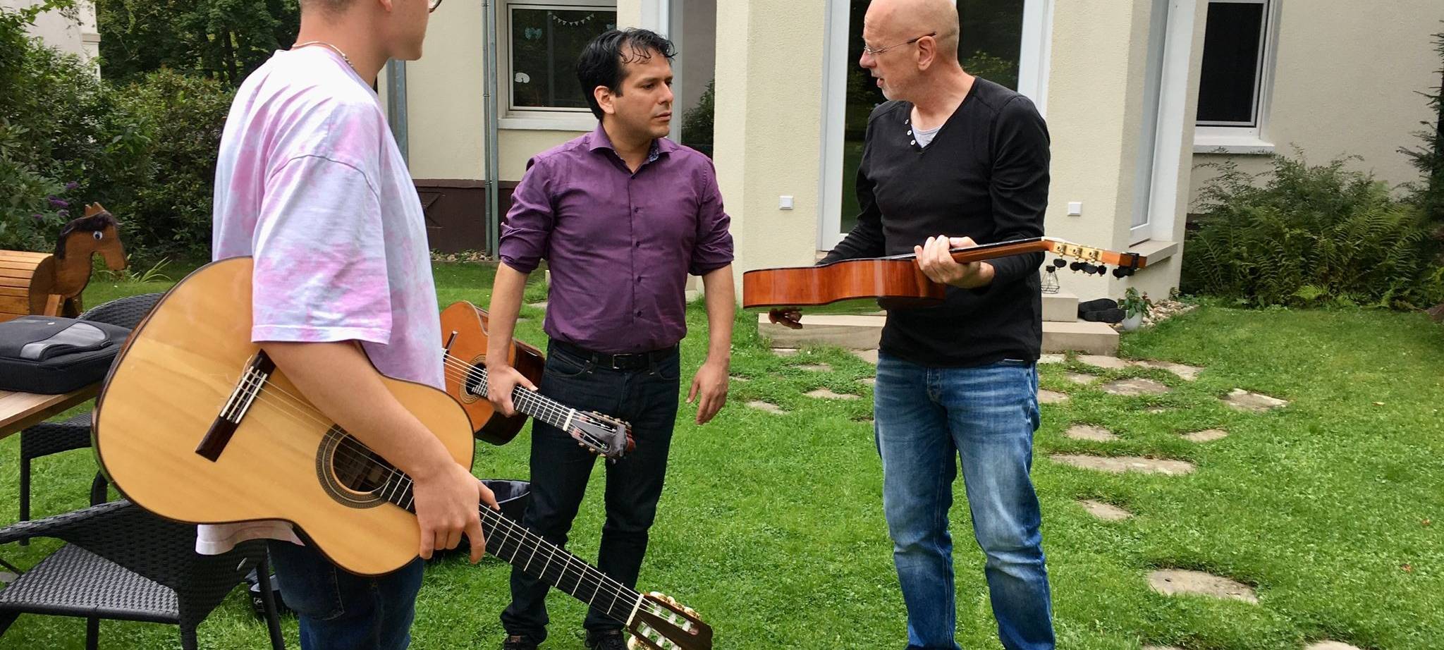Musikstudenten können im Rahmen des Festivals Meisterkurse besuchen. Sie nehmen sozusagen öffentlichen Unterricht. Die Chance will sich auch der 22-jährige TU-Student Moritz Melcher nicht entgehen lassen. Er freut sich, dass er seine Begeisterung für die Gitarre irgendwann mal an Musikschüler weitergegeben kann. Er wird dann einer von vielleicht immer noch viel zu wenigen Musikpädagogen sein, weiß sein Lehrer Martin Klausmeier, ein TU-Kollege von Navarro.