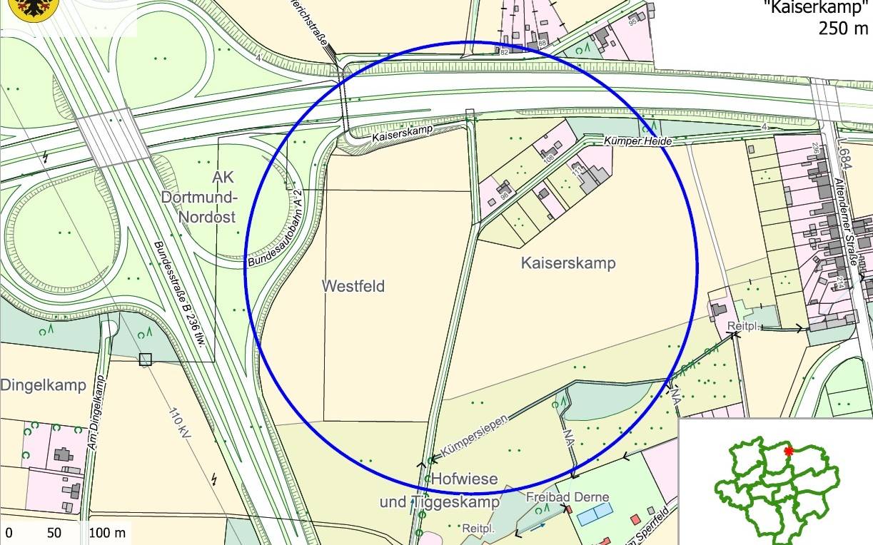 In Dortmund-Derne muss heute (Mittwoch) Abend noch ein Blindgänger entschärft werden. Das hat die Stadt gemeldet. An der Ecke Kümper Heide/Kaiserskamp ist der britische Sprengkörper gefunden worden, in der Nähe des Derner Freibades. Davon ist auch die A2 zwischen Lünen Süd und Autobahnkreuz Dortmund Nordost betroffen, sie wird am Abend in beiden Richtungen gesperrt. Außerdem müssen 80 Anwohner ihre Wohnungen verlassen. Der Evakuierungsradius ist 250 Meter groß, denn es handelt sich um eine 250-Kilo-Bombe. Sie war bei Baumaßnahmen gefunden worden. Vor 18 Uhr soll es aber nicht losgehen, sagt die Stadt.