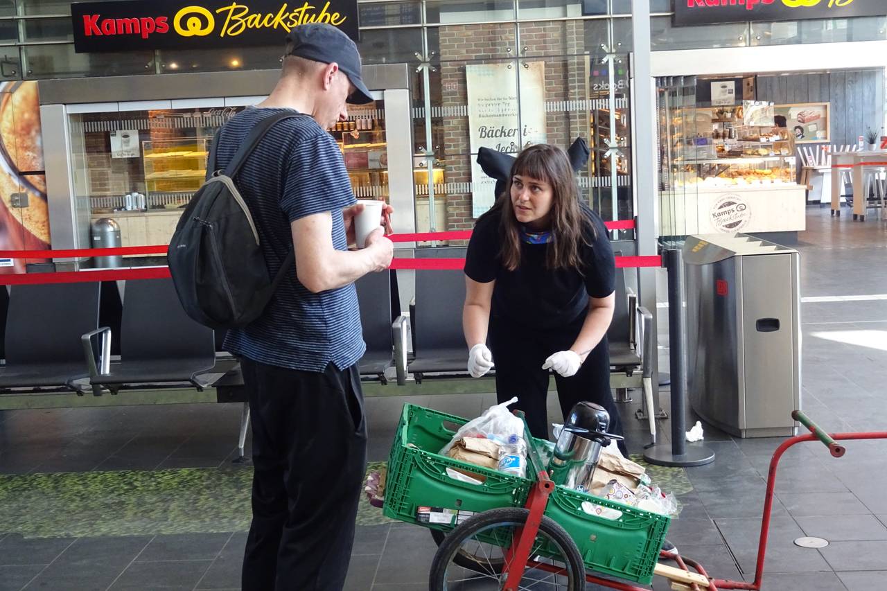 Die Ausgabe von Lebensmittel, Gebrauchs- und Hygieneartikeln ist dabei Teil unserer Arbeit und wichtig, denn an den heißen Sommertagen in diesem Jahr gab es kaum frische Wasserstellen für die Wohnungslosen (wegen Corona). Wir verteilten dann Wasser und andere Lebensmittel an sie, um zurecht zu kommen.