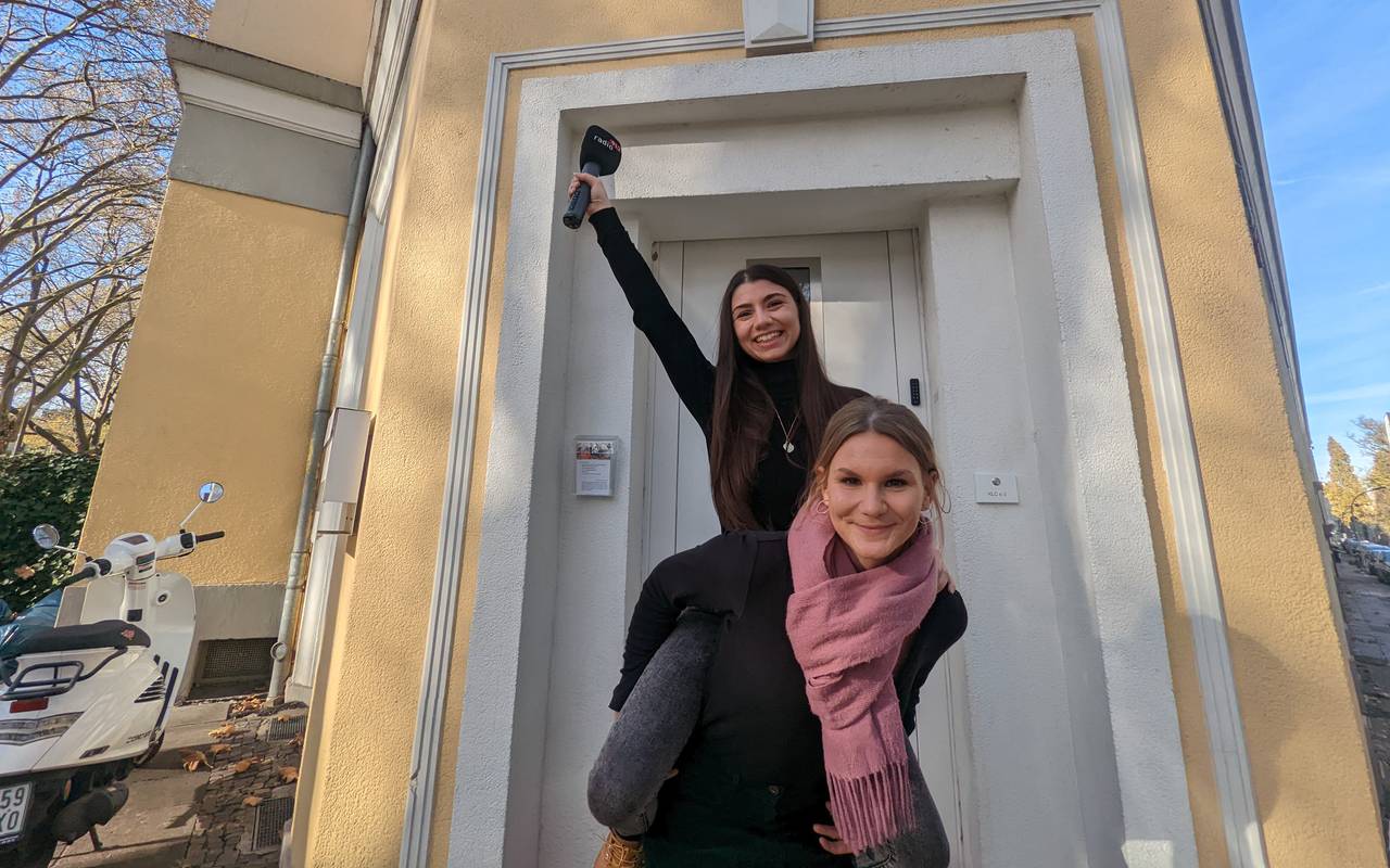 Radio 91-2-Moderatoren Tim Schmutzler und Christopher Deppe überraschen Senajla Ikic von Kinder Lernen Clever e.V. mit Platz 3 beim Anpacker 2022-Voting.