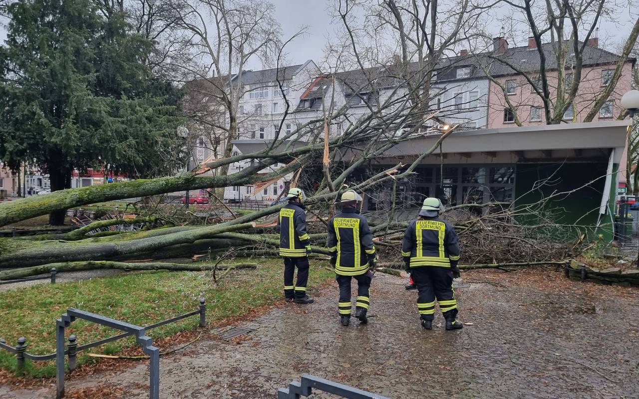 Seit Sonntagabend (20.2.) hat die Dortmunder Feuerwehr gut 30 Einsätze gezählt. Umgeknickte Bäume haben in Bodelschwingh und Berghofen Autos getroffen. In Berghofen wurde dabei ein Mensch in seinem Wagen eingeklemmt, aber nicht verletzt. Die Feuerwehr kam zur Hilfe.