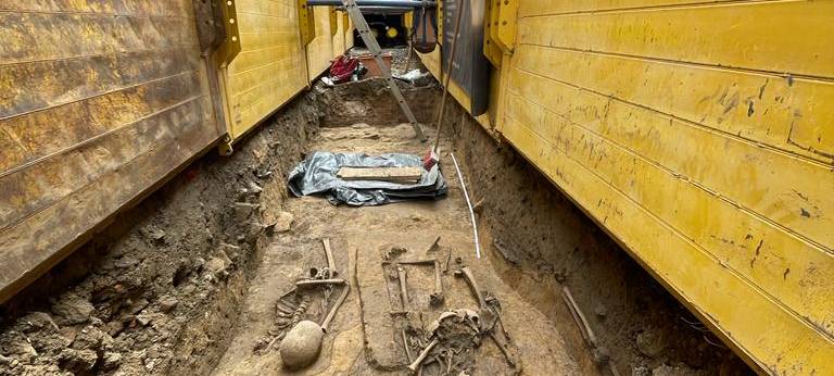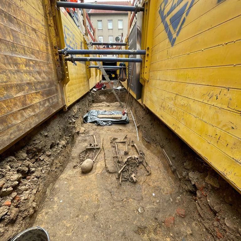 Die Dokumentation im 3D-Verfahren ist fast abgeschlossen. Was mit den sterblichen Resten passieren soll, ist noch unklar. Die Bauarbeiten für das Fernwärmenetzes werden sich deshalb im Bereich Klosterstraße, Mönchsgang und Stiftstraße um mindestens 5 Wochen verzögern.