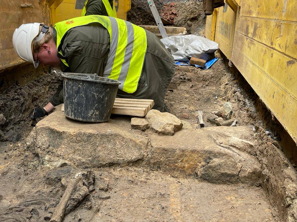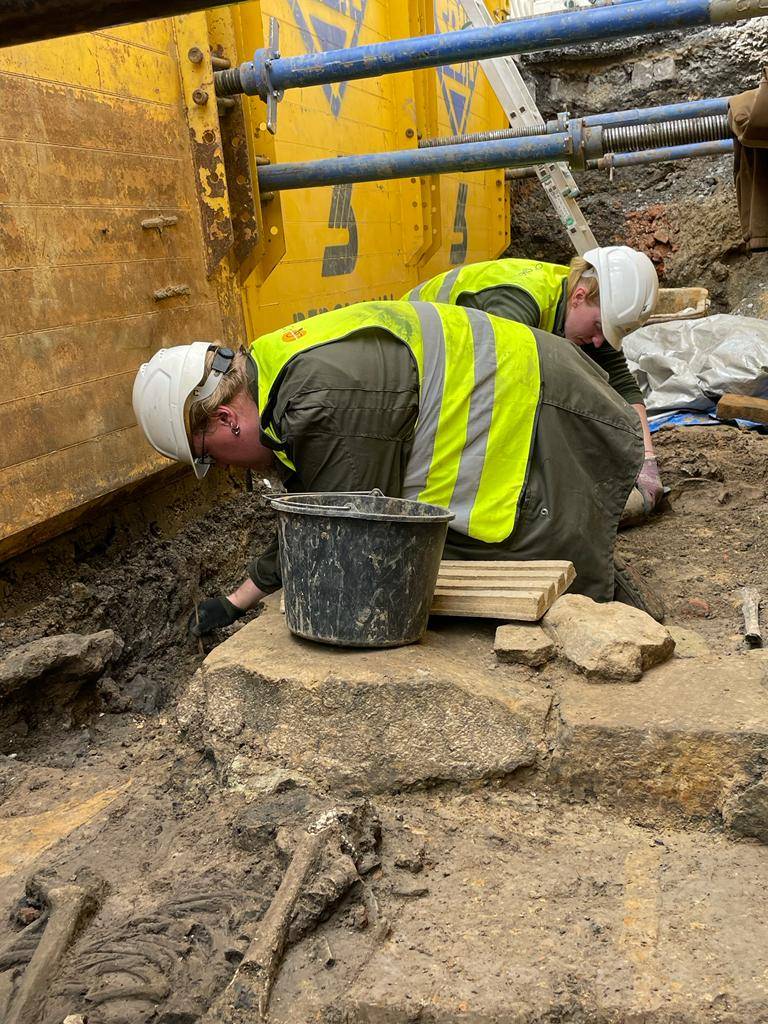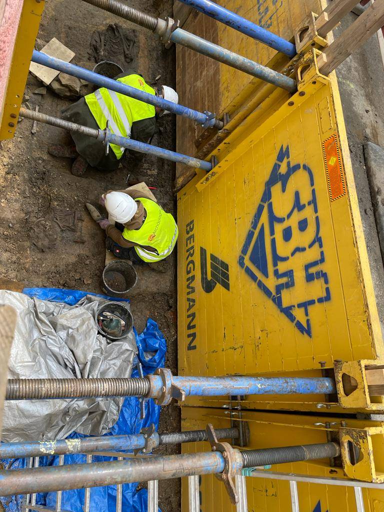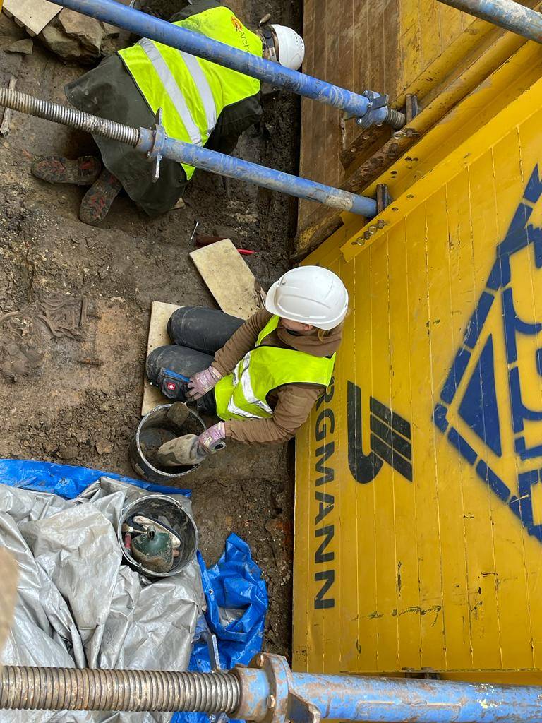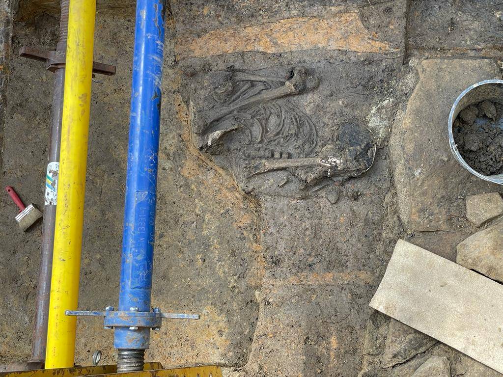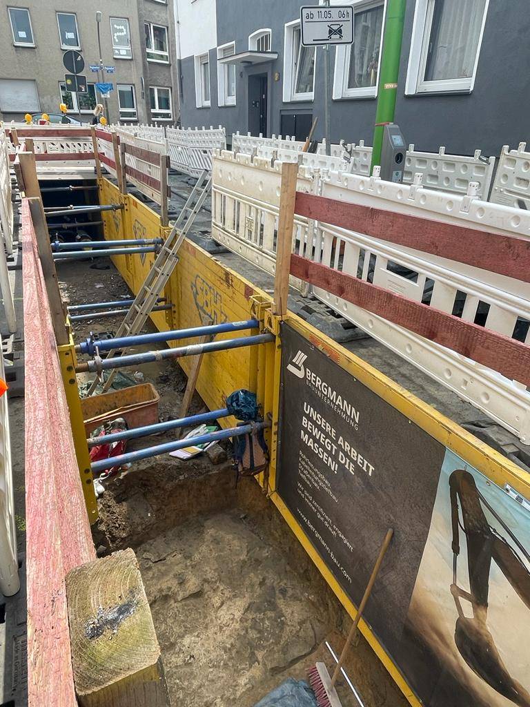 Die Dokumentation im 3D-Verfahren ist fast abgeschlossen. Was mit den sterblichen Resten passieren soll, ist noch unklar. Die Bauarbeiten für das Fernwärmenetzes werden sich deshalb im Bereich Klosterstraße, Mönchsgang und Stiftstraße um mindestens 5 Wochen verzögern.