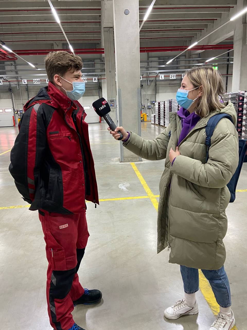 Radio 91.2-Reporterin Sophie Conrad hat im Rewe Frische-Logistikzentrum Azubi Jastin getroffen. Er macht eine Ausbildung zur Fachkraft für Lagerlogistik.