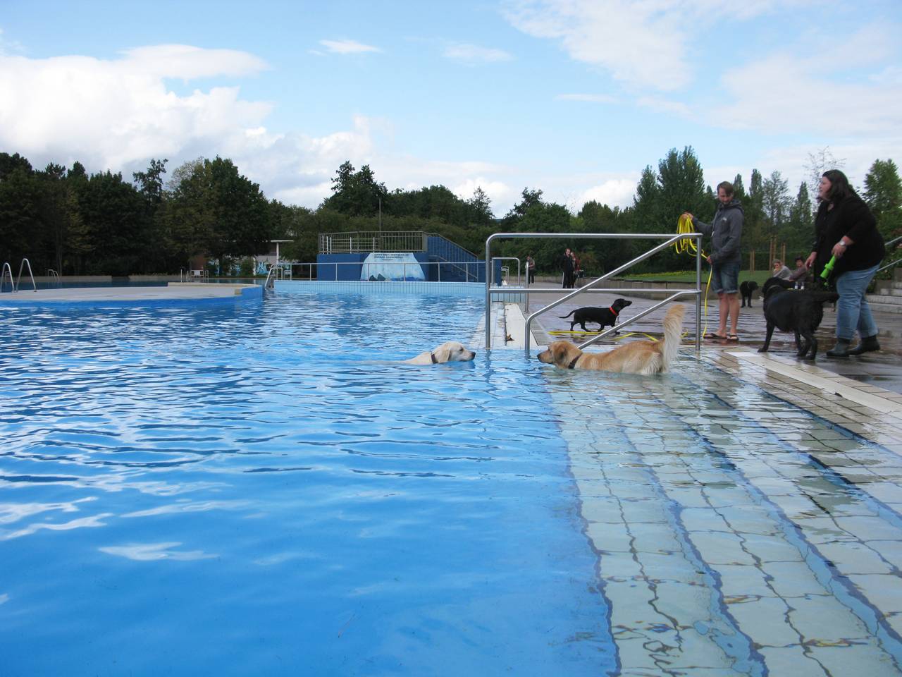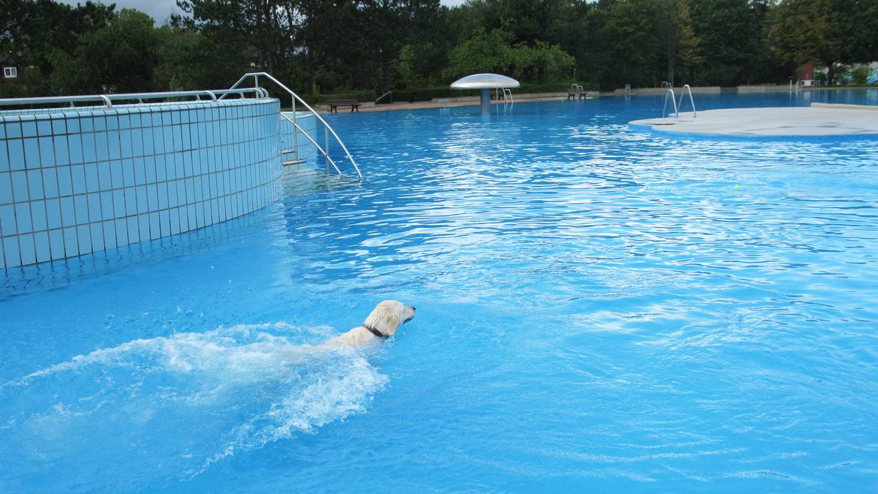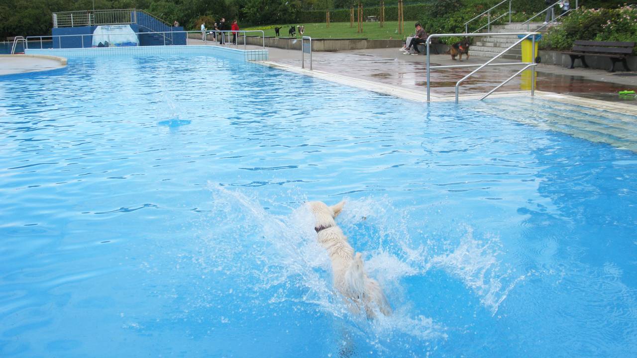 Was sonst verboten ist, war am Donnerstag ausdrücklich erwünscht: Hunde im Freibadbecken! Die Vierbeiner durften sich ganz offiziell zum Abschluss der Badesaison im Freibad Hardenberg mal richtig schön austoben. Dort fand von 15-18 Uhr das Hundeschwimmen statt. Unsere Reporterin Selina Stolze war dabei.