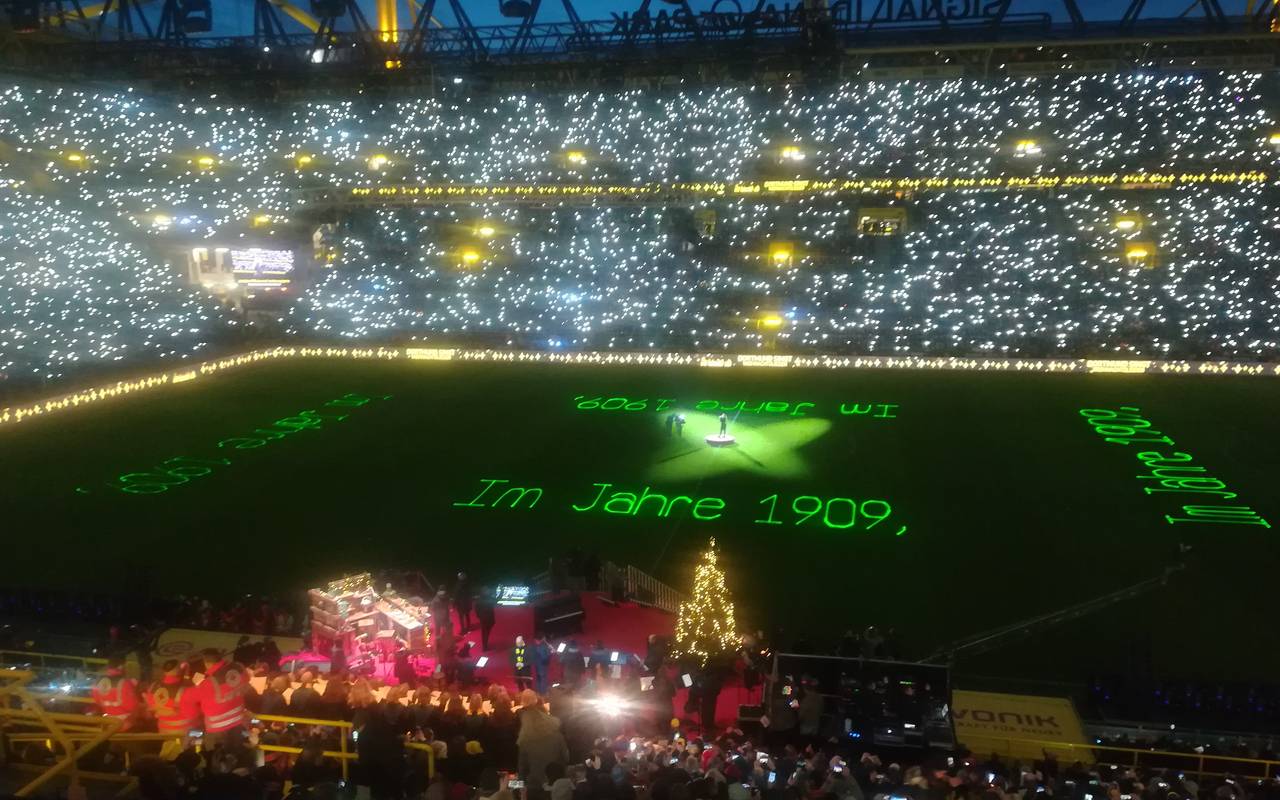 Der vermutlich größte Chor der Welt war gestern im Westfalenstadion. 68.000 Borussen haben gemeinsam Weihnachtslieder gesungen. Noch mehr als in den beiden Vorjahren. Zum ersten Mal waren alle Tribünen geöffnet und alle Karten ausverkauft.