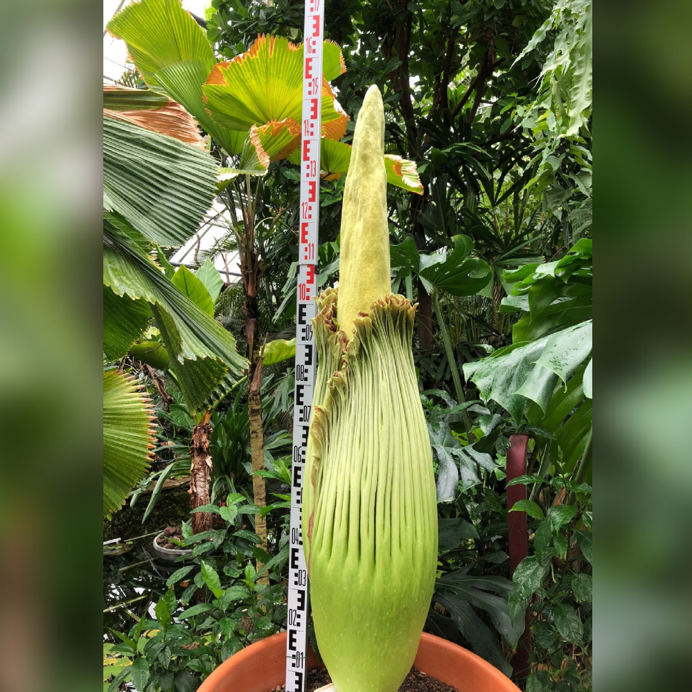 Eine Titanenwurz ist ja die größte Blüte oder Blume der Welt und kann bis zu 2,5 Meter groß werden. Sie sieht schon spektakulär aus und es kommt recht selten vor, dass sie dann auch blühen. "David" hat zuletzt im August 2018 im Botanischen Garten im Rombergpark geblüht.