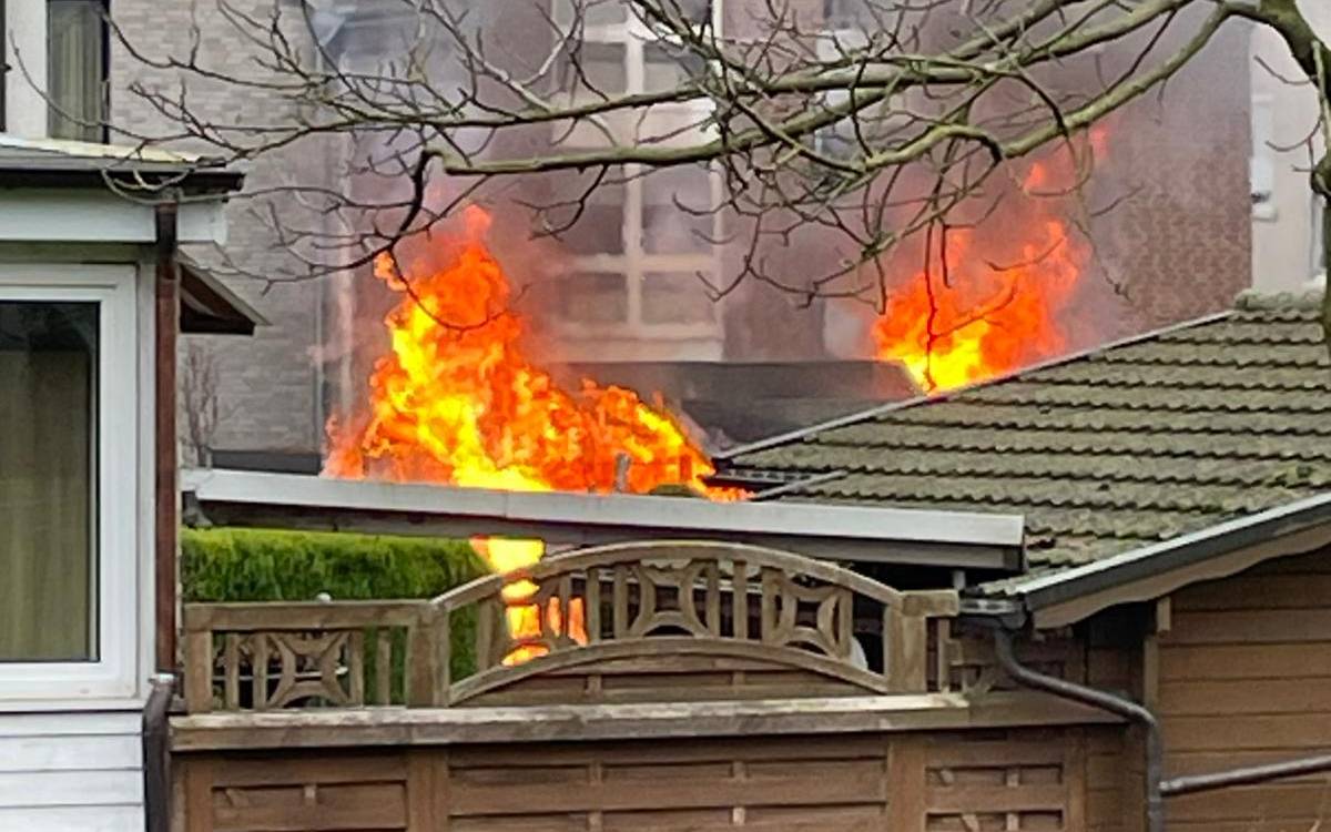 Flammen lodern aus dem Dach: An der Sölder Straße hat eine Gartenhütte gebrannt.