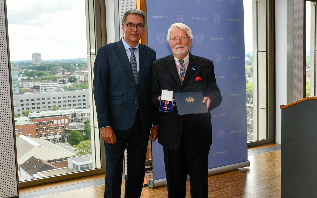 Seit Jahren engagiert er sich für die Dortmunder Tafel, jetzt hat Horst Röhr das Bundesverdienstkreuz bekommen. Oberbürgermeister Thomas Westphal verlieh die Auszeichnung im Auftrag des Bundespräsidenten. Horst Röhr war vorher viele Jahre Leiter des Christlichen Jugenddorfwerkes.
