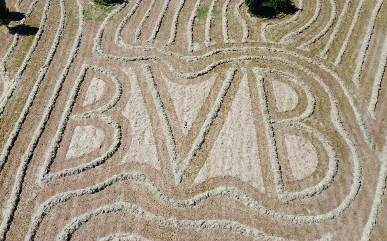 Drohnenaufnahmen vom BVB-Logo in der Wiese