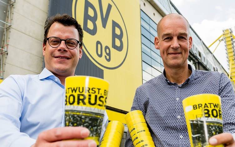Zur neuen Saison habe man gemeinsam mit der deutschen Umwelthilfe eine Lösung erarbeitet, die ökologisch sinnvoll und zugleich fanfreundlich sei, erklärte der BVB. Auch in der abgelaufenen Saison hatte Borussia Dortmund mit 1,5 Millionen Einwegbecher wieder den meisten Plastikmüll in der Bundesliga produziert. Das soll ab jetzt anders werden.