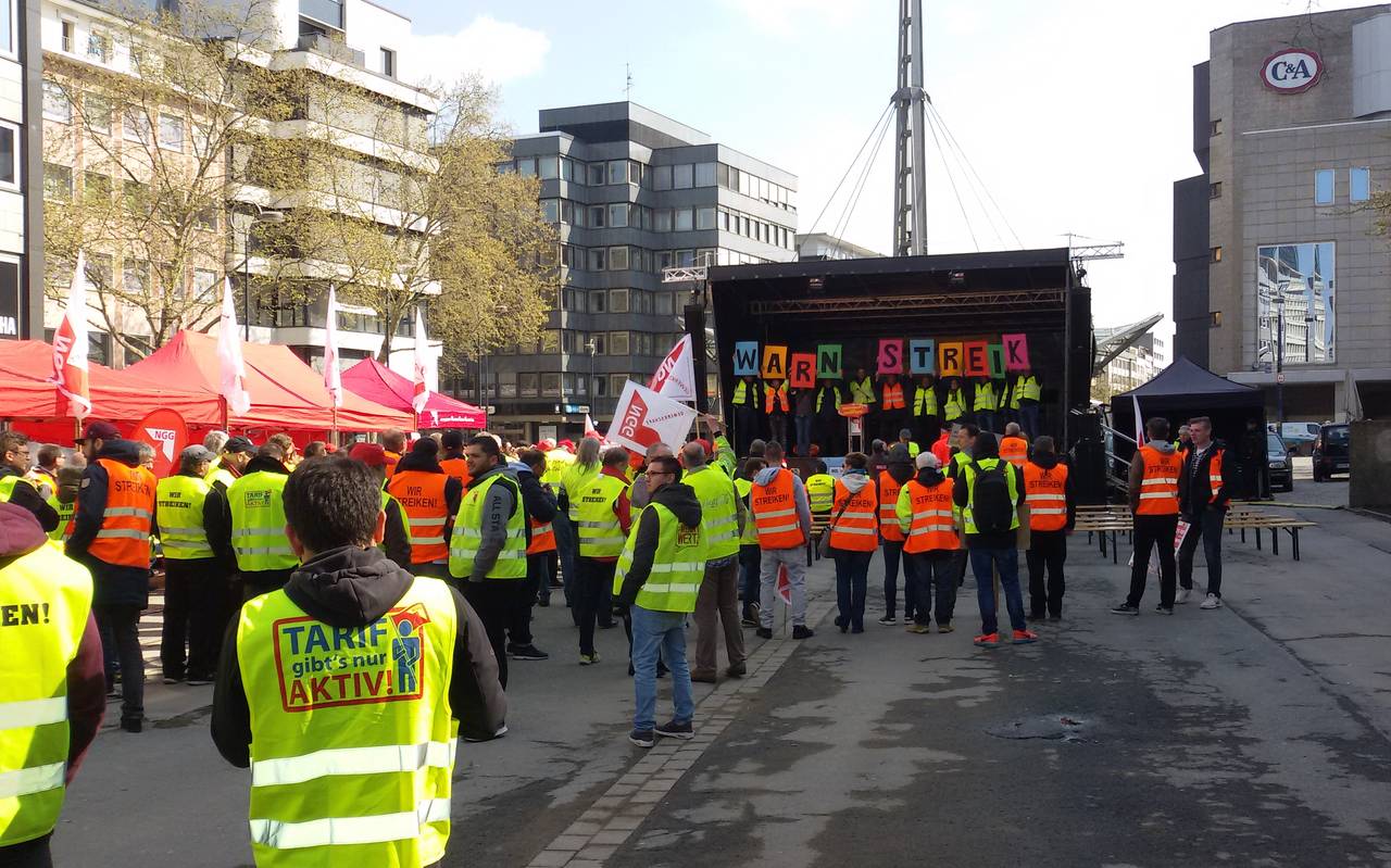 Mehrere hundert Coca-Cola Beschäftigte aus ganz NRW beteiligen sich an einer Streikkundgebung in der Dortmunder City. Die Gewerkschaft Nahrung-Genuss-Gaststätten hat die 7.500 Beschäftigten im Vorfeld der nächsten Tarifrunde für heute zum Warnstreik aufgerufen. Bei der zentralen Kundgebung an der Reinoldikirche in Dortmund forderte die Gewerkschaft 180 Euro mehr Lohn im Monat.