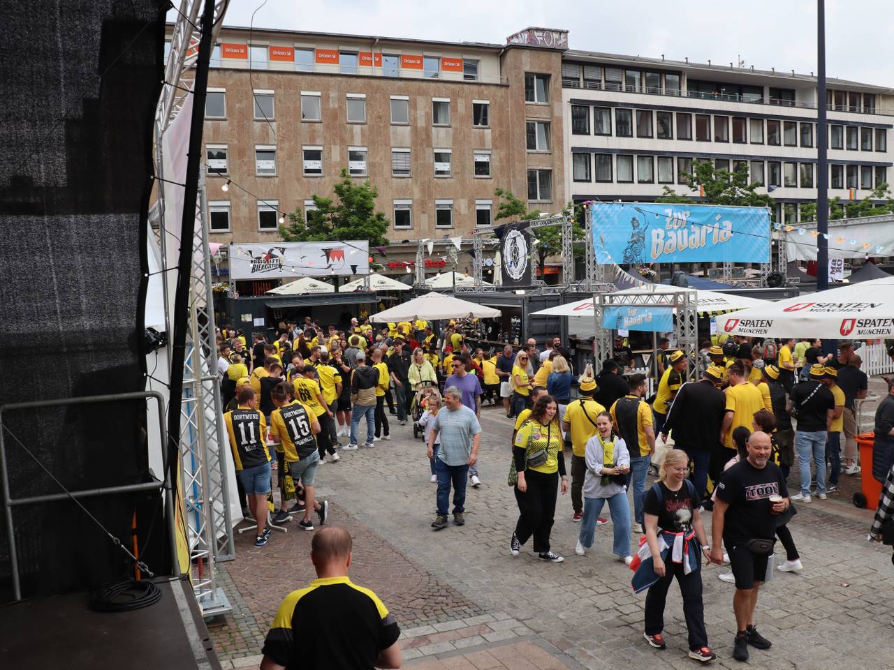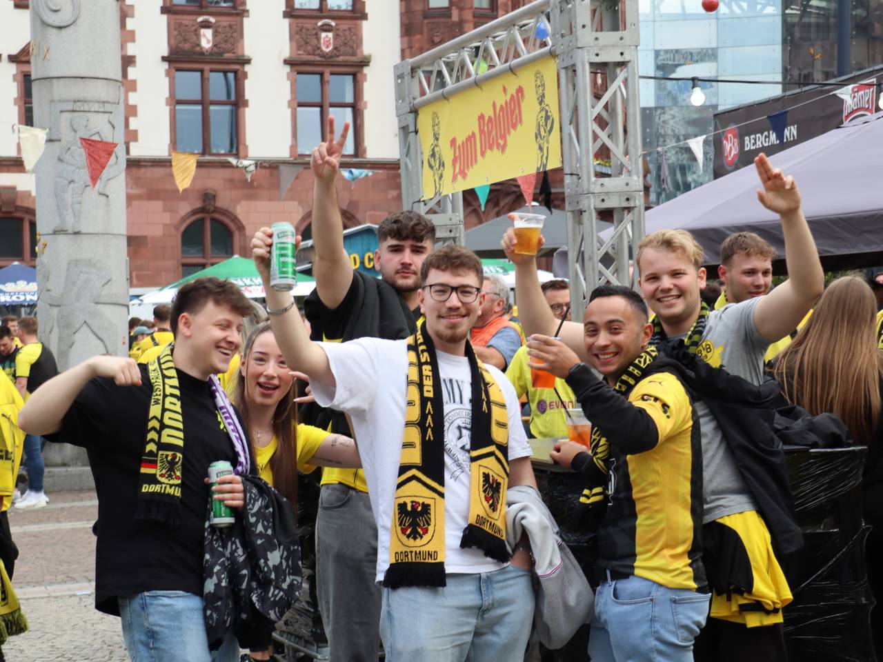 Ausgelassen. Aus der Fußgängerzone sind Fanchöre zu vernehmen. Ein großer Fanmarsch führte mit lautem Gesang vom Westenhellweg über den Hansaplatz. Auch auf dem Festplatz Eberstraße haben sich schon vor dem offziellen Beginn des von Radio 91.2 präsentierten Public Viewings jede Menge Fans eingefunden.
