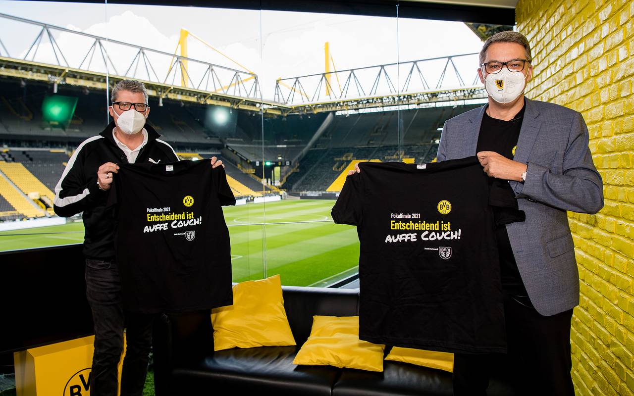 Die BVB-Fans sollen das DFB Pokalfinale wegen der Corona-Pandemie möglichst zu Hause feiern. "Entscheidend ist auffe Couch" lautet das Motto von Borussia Dortmund und der Stadt Dortmund.
