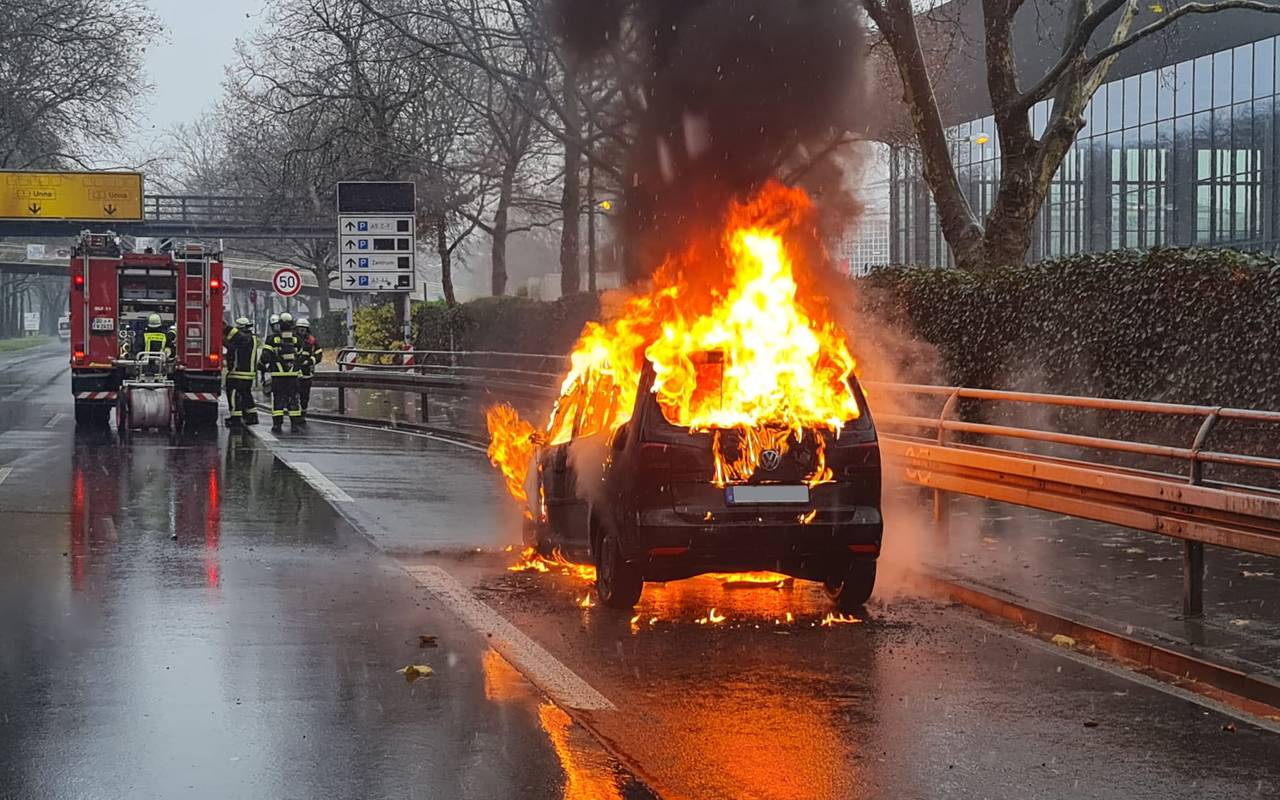 Ein Autobrand auf der B1 hat am Vormittag den Verkehr ausgebremst. Höhe Westfalenhallen stand gegen halb 10 in Richtung Unna ein Auto in Flammen.