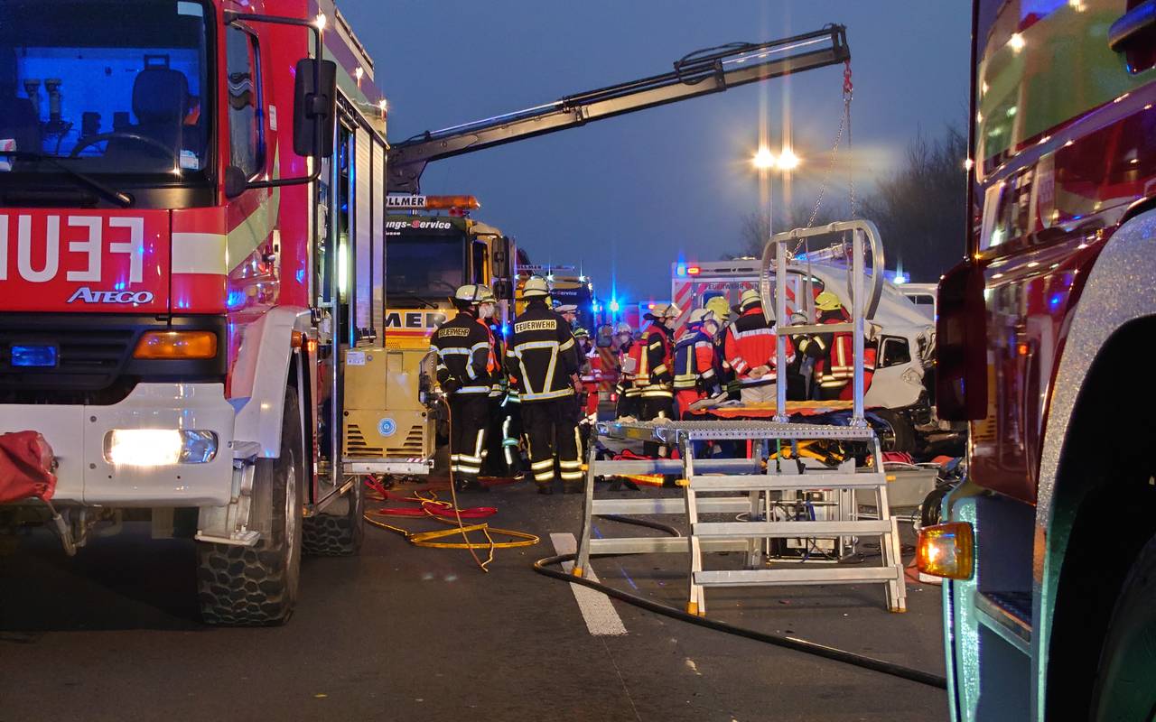 In Höhe Kamener Kreuz war ein LKW-Fahrer auf ein Stauende aufgefahren. Er hatte ein Auto mit Anhänger gegen seinen Vordermann geschoben - der wiederum wurde unter einen Sattelzug gepresst. In beiden Autos wurden Passagiere eingeklemmt. Ein Mensch starb noch am Unfallort. Zwei weitere wurden lebensgefährlich verletzt. Die A1 Richtung Köln war während der Bergungsarbeiten stundenlang gesperrt.