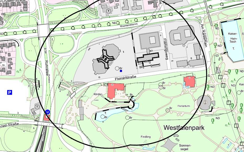 Im Rahmen von Bauarbeiten an der Florianstraße wurden vier 250-KG-Blindgänger aus dem Zweiten Weltkrieg gefunden. Sie müssen noch am Abend durch den Kampfmittelbeseitigungsdienst entschärft werden. Deswegen umliegende Gebiet in einem Radius von 250 Metern evakuiert werden. Der Westfalenpark schließt um 14 Uhr. Von der Evakuierung sind etwa 50 Anwohner betroffen.