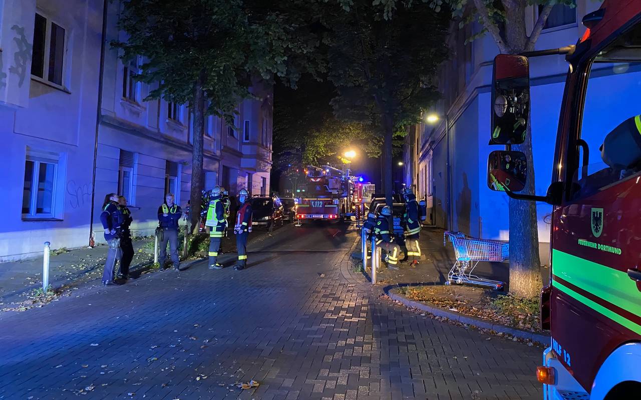 In der ersten Etage des Mehrfamilienhauses brannte eine Wohnung, die Flammen schlugen bereits in den Treppenraum. Durch den ausgelösten Alarm waren die Anwohner frühzeitig geweckt worden. Die meisten standen bereits auf der Straße, als die Dortmunder Feuerwehr eintraf.