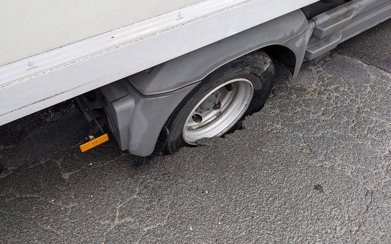 Nach einem Tagesbruch an der Straße Breierspfad in Dortmund-Brackel ist der Bereich komplett gesperrt. Am Mittwochmorgen war dort ein Kleinlastwagen mit seinem Hinterrad in einem Asphalt-Loch steckengeblieben.
