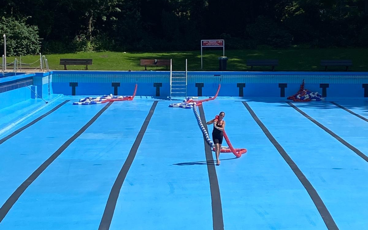 Bevor aber geöffnet werden kann, muss erst noch einmal geprüft werden, ob die Wasserpumpen und Filter alle noch richtig arbeiten. Und das Wasser muss noch gechlort und freigegeben werden.