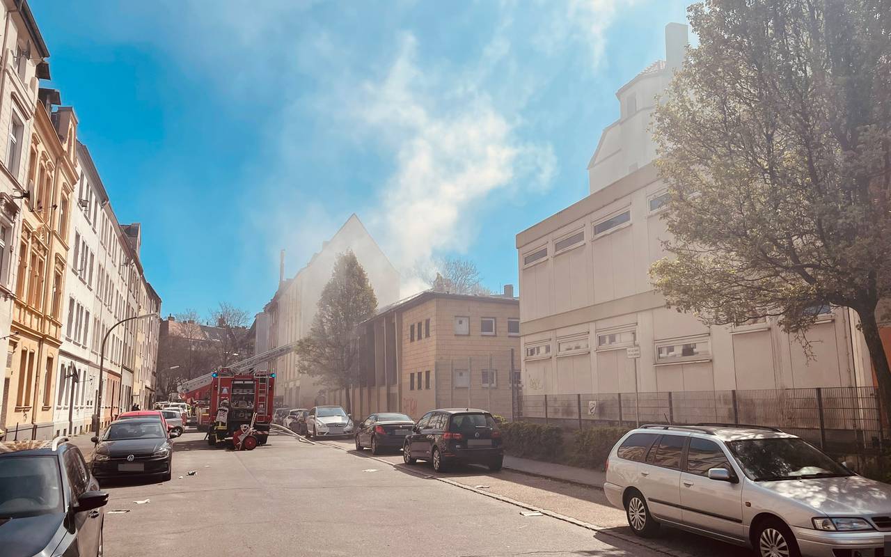 Die Halle wird gewerblich genutzt und liegt im Hinterhaus eines Wohnhauses an der Dürener Straße. Wegen der starken Rauchentwicklung sollten Anwohner Türen und Fenster geschlossen halten.
