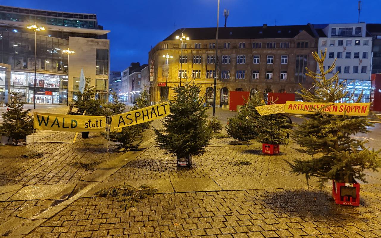 Sie wollten ein Zeichen gegen das Waldsterben setzen, erklärte eine Dortmunder Aktivistin. So gab es auch Schilder mit der Aufschrift: "Wald statt Asphalt" oder "Lebensräume erhalten - Wälder schützen". Mit der Aktion sollte aber nicht gegen die Tradition der Weihnachtsbäume protestiert, sondern auf den schlechten Zustand der Wälder hingewiesen werden. Sie seien in ihrem schlechtesten Zustand seit 1984.