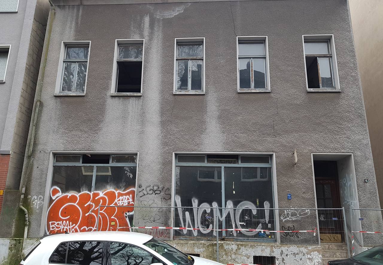 Das Haus in der Johanna-Melzer-Str. 6 ist der Stadt bekannt. Es stehe seit ein paar Jahren leer. Es habe mehrere Eigentümer-Wechsel gegeben, sagte ein Stadtsprecher. Demnach haben sich Anwohner auch immer wieder über Ratten und Müll beschwert, und weil Unbefugte in das Gebäude eingedrungen waren. Ein Foto der Feuerwehr zeigt nun, dass in dem Gebäude Entkernungsarbeiten begonnen haben, die die Statik des Hauses gefährden könnten. Laut Stadt liegt keine Baugenehmigung vor.