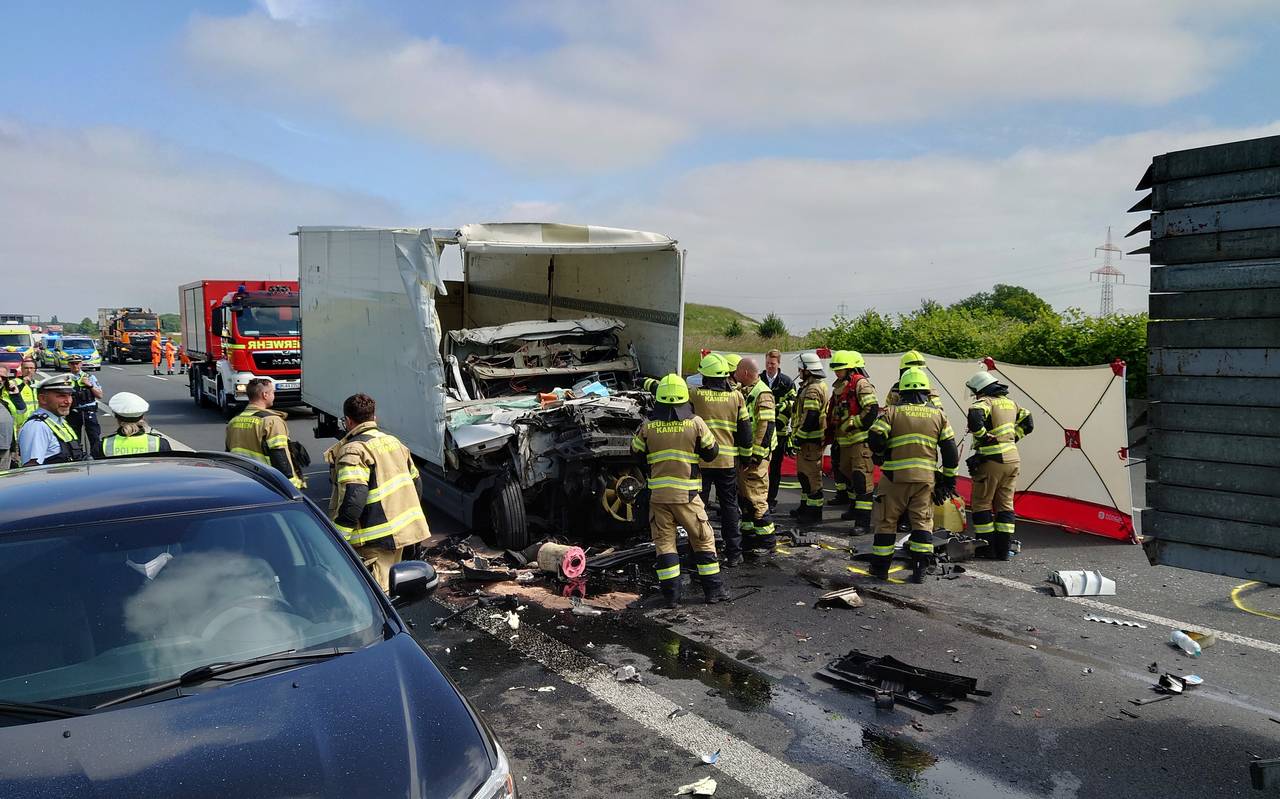 Die Bergungsarbeiten dauern noch an. Die A 1 ist in Richtung Köln in Höhe Kamener Kreuz nur auf der linken Spur befahrbar, die rechte und die mittlere sind gesperrt. Es wurden Sichtschutzzäune aufgebaut, damit Gaffer nicht auch noch die Gegenfahrbahn blockieren. Kurz hinter der Unfallstelle ist am Mittag schon der nächste Unfall passiert.