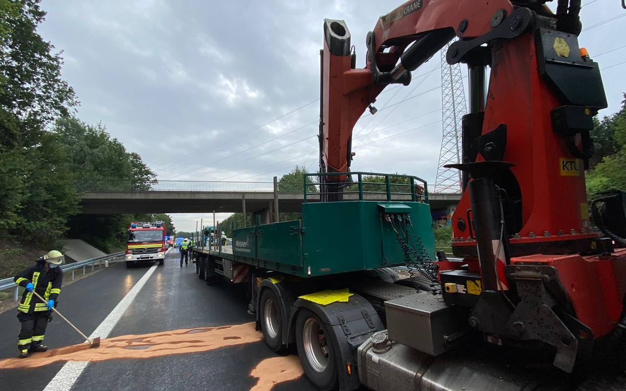Nach Angaben der Polizei sind durch den Unfall Schäden an der Brücke sichtbar. Der Landesbetrieb Straßen.NRW habe Bauprüfer beauftragt, sagte eine Sprecherin auf Nachfrage von Radio 91.2. Nach der ersten Begutachtung hätte sich keine akute Verkehrsgefährdung gezeigt. Die Brücke kurz vor der B 54 könne weiter genutzt werden.