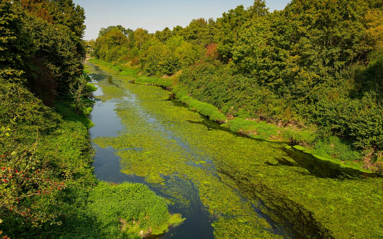 Wasserpflanzen lassen Emscher in Dortmund ansteigen