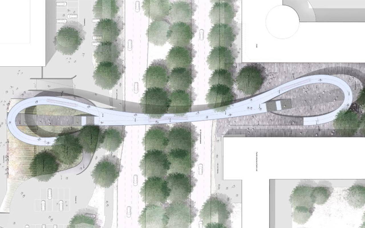 Die Brücke verbindet den Max-Ophüls-Platz mit dem Vorplatz der Westfalenhallen. Die Stadt möchte dort einen barrierefreien Ersatzneubau errichten. Die Brücke wird an Messetagen und bei BVB-Spielen stark genutzt. Sie stammt aus den 50-er Jahren und weist Steigungen von weit mehr als sechs Prozent auf. Das gilt nicht als barrierefrei. Bis auf Abschlussarbeiten soll die neue Brücke im Frühjahr 2024 zur EM fertig sein. Die Stadt erwartet eine 80-prozentige Förderung der Baukosten.