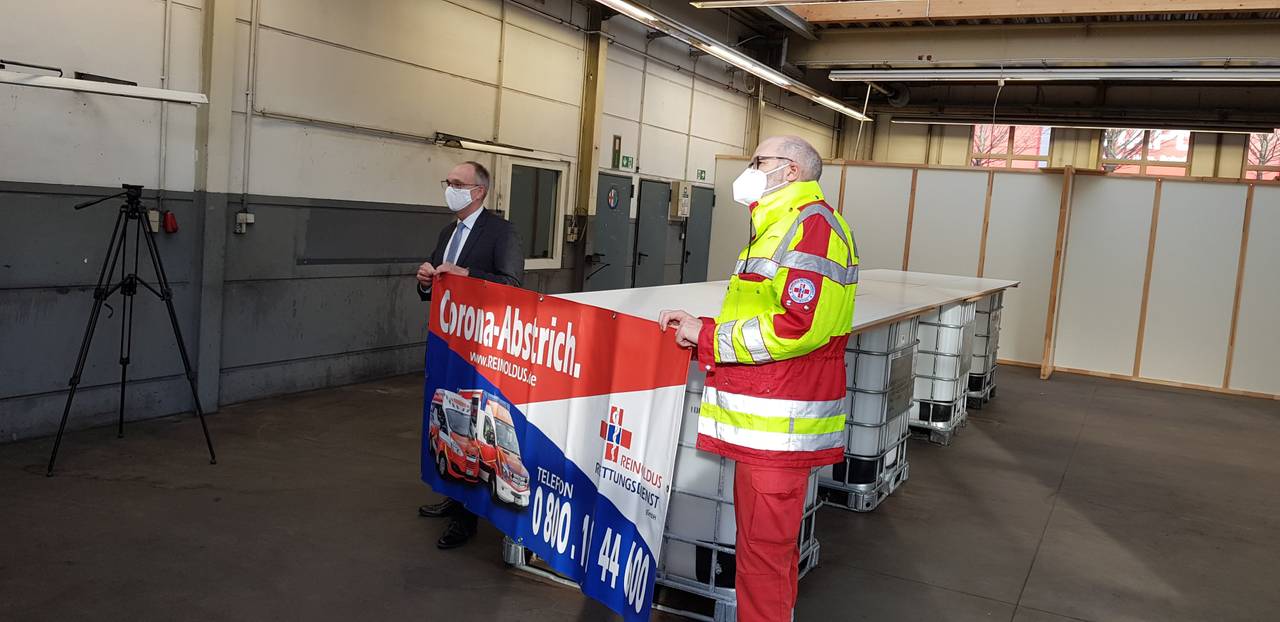 In einem ehemaligen Autohaus (Bornstraße 181) neben dem Baumarkt will der Reinoldus Rettungsdienst die neue Corona-Teststelle mit Drive In am Wochenende einrichten. Die Termine zur Testung werden vom Gesundheitsamt vergeben. Eine spontane Testung auf Wunsch sei nicht möglich, sagte der Leiter des Gesundheitsamtes Dr. Frank Renken. Kontaktpersonen mit Krankheitssymptomen können zum Test mit dem Auto vorfahren. Bereits positiv Getestete sollen hier einen zweiten Kontrollabstrich bekommen.