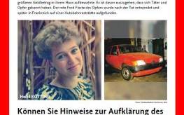 Die Dortmunderin war im Februar 1991 in ihrem Haus in Scharnhorst getötet worden. Einbrecher mit Ortskenntnissen wussten, dass die Frau einen größeren Bargeldbetrag im Haus aufbewahrte. Ermittler gehen davon aus, dass sich Täter und Opfer kannten. Der rote Ford Fiesta der Dortmunderin wurde nach ihrem Tod gestohlen und später in Frankreich an einer Autobahnraststätte entdeckt. Die Tat konnte bis heute nicht geklärt werden.