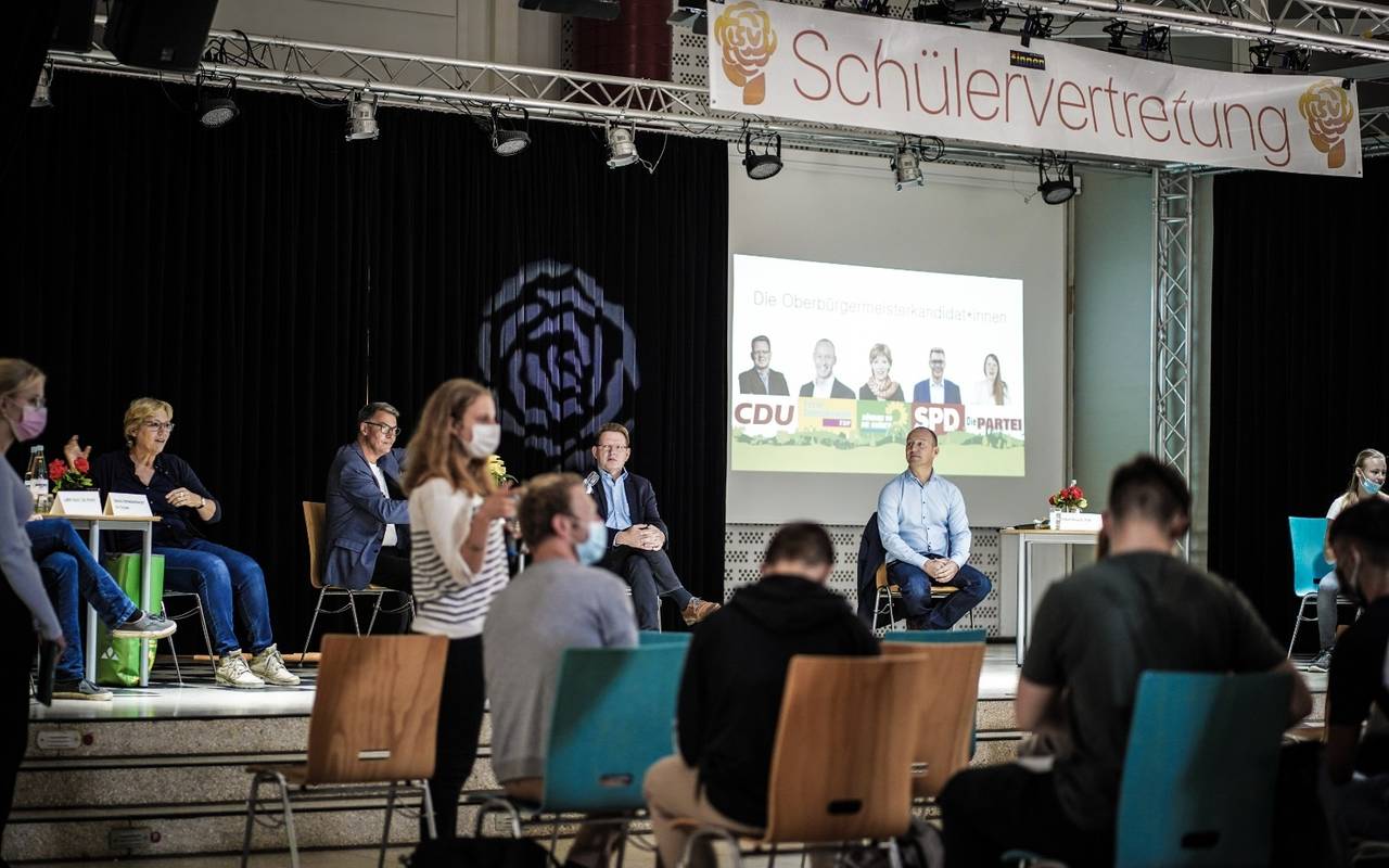 Die Schülervertretung der Geschwister-Scholl-Gesamtschule veranstaltete am Donnerstag (27.8.) eine Podiumsdiskussion zur Kommunalwahl 2020. Mit dabei waren die Oberbürgermeisterkandidaten der SPD, CDU, der Grünen, FDP und der Partei. Radio 91.2-Reporter Yakup Sarli war dabei.