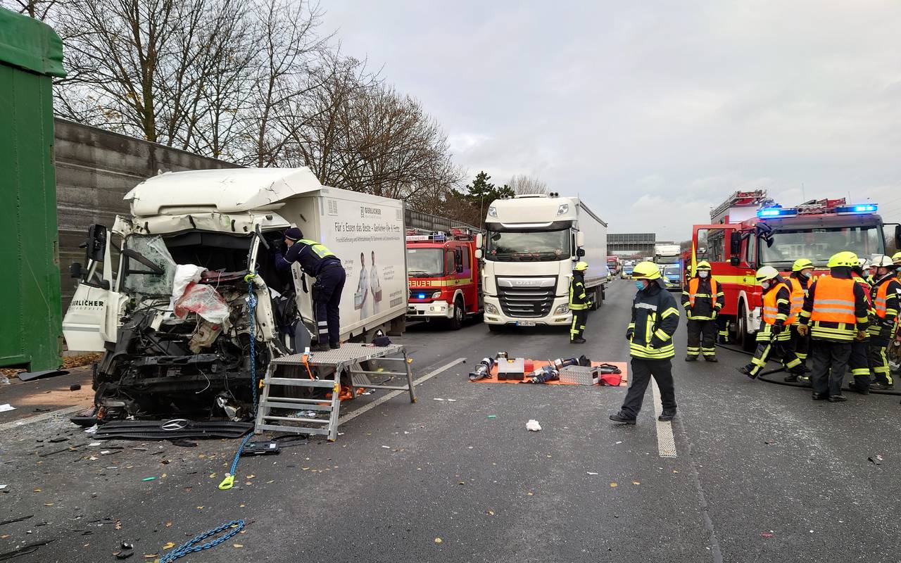 Auf der A1 ist am Kreuz Dortmund-Unna kam es am Freitag (3.12.) zu einem Unfall. Ein kleiner LKW ist auf einen 40-Tonner LKW aufgefahren. Der Fahrer des Transporters wurde schwer verletzt.