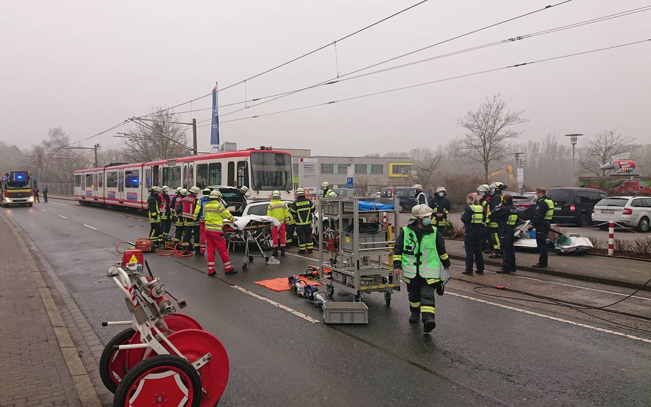 Gegen 10:00 Uhr wollte ein Autofahrer von der Marsbruchstraße nach links auf das Gelände der Elisabethklinik abbiegen. Dabei achtete er offenbar nicht auf eine Straßenbahn, die sich von hinten näherte. Es kam zum Zusammenstoß bei dem die Bahn das Auto auf der Fahrerseite erfasste.