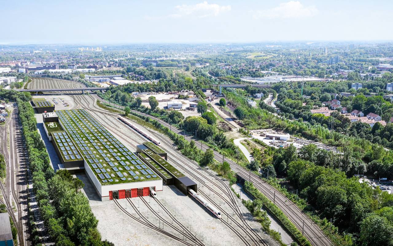 Im Zentrum des Projekts steht eine 480 Meter lange Werkshalle, die Platz für Züge in voller Länge bietet. Auf insgesamt vier Gleisen sollen die ICEs hier überprüft, repariert und gereinigt werden. Die Bahn legt besonderen Wert darauf, das Werk komplett CO2-neutral und nachhaltig zu betreiben. Neben der zentralen Halle werden auf dem Gelände mehrere weitere Gebäude errichtet.