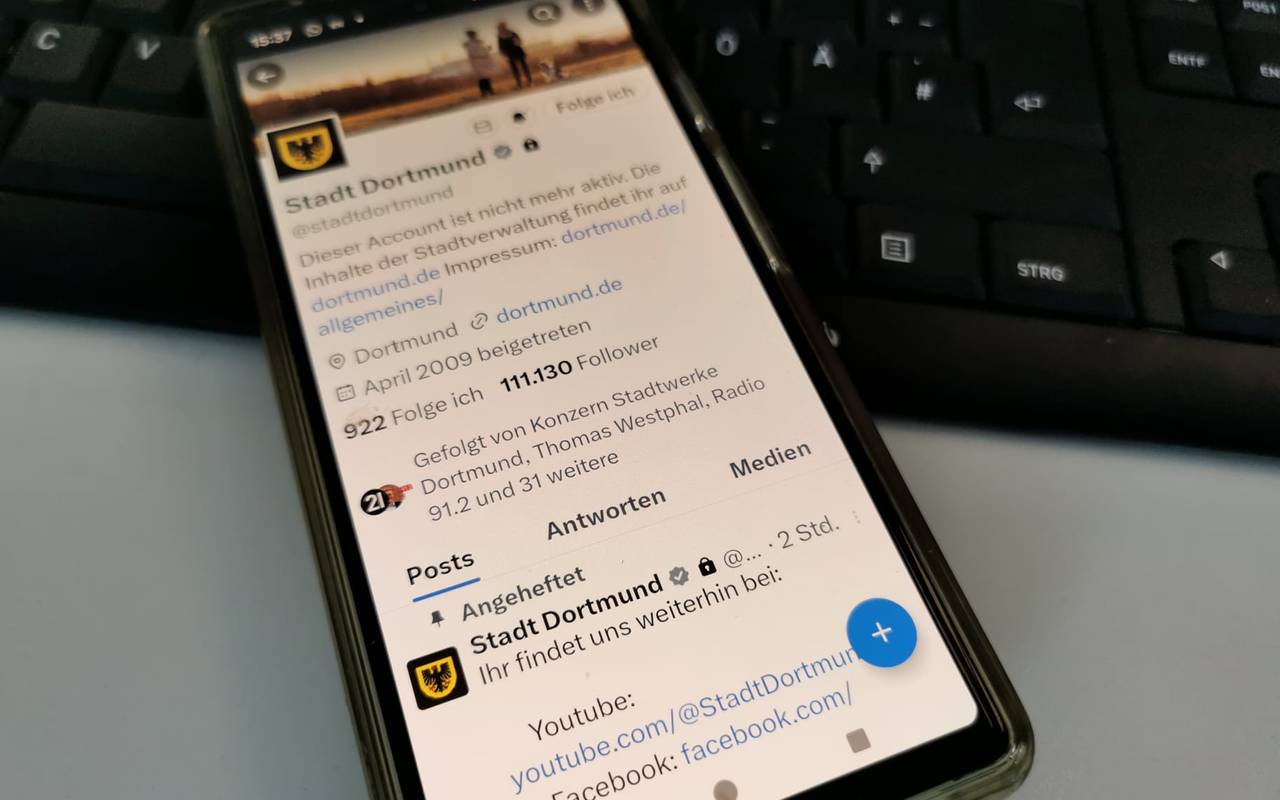 Die Stadt Dortmund hatte ihre Beiträge auf X eigenen Angaben nach in den vergangenen Monaten bereits reduziert. Als Grund nennt sie die abnehmende Reichweite und Umstrukturierung der Plattform. Für die direkte Kommunikation zu Themen wie Technologie und Wissenschaft und für die Krisen-Kommunikation (zum Beispiel bei der Entschärfung von Blindgängern) wurde der Account mit über 110.000 Abonnent*innen aber weiterhin genutzt. Damit ist jetzt auch Schluss. Die Stadt Dortmund will daher verstärkt ihre anderen Kanäle nutzen - also Facebook, Instagram, die städtische Homepage und Mastodon.