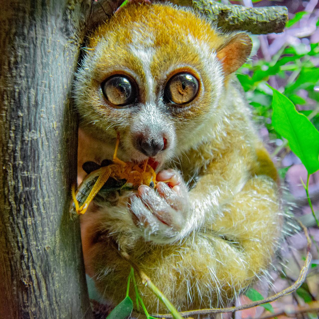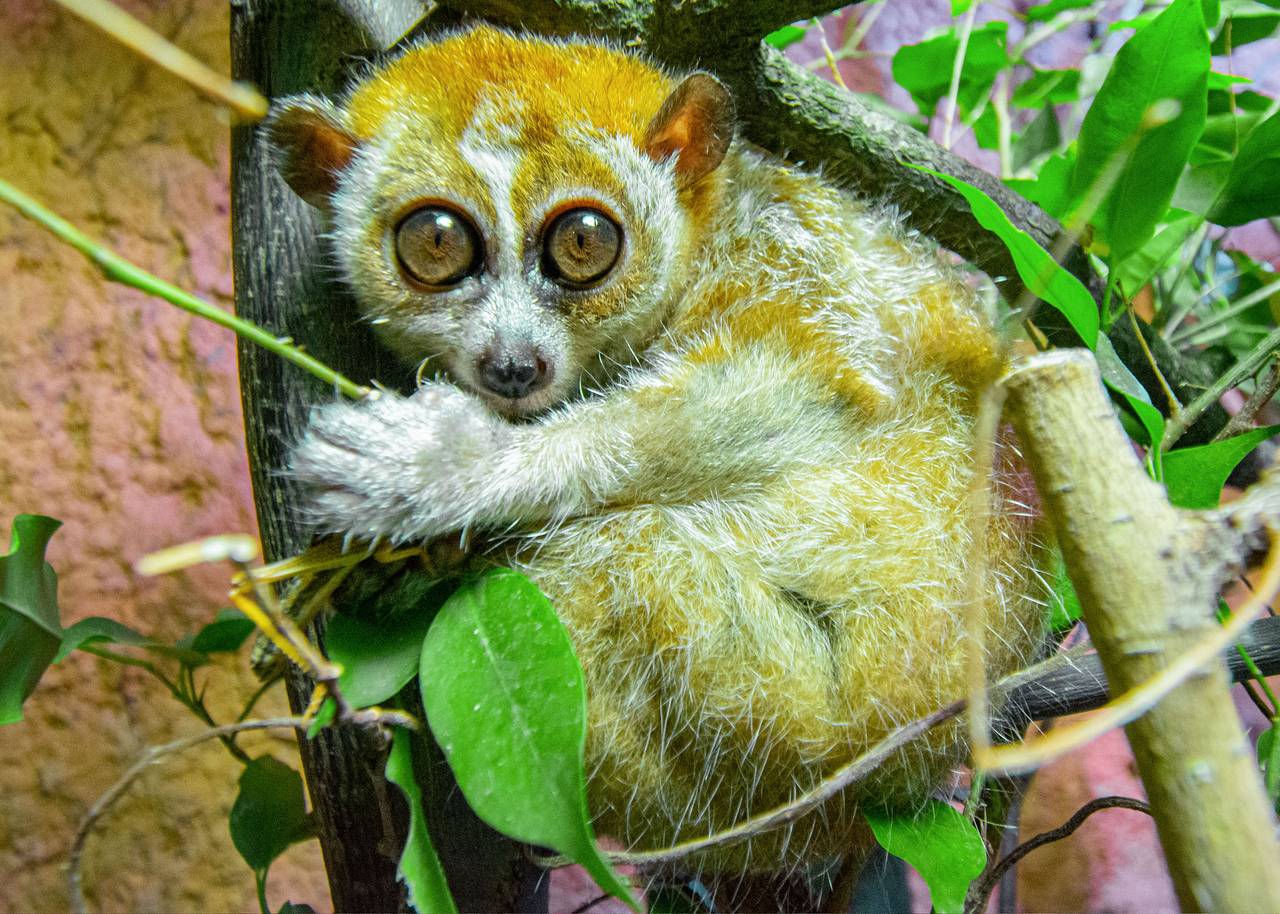 Bei dem Blick kann keiner widerstehen: Zwergplumploris sind kleine Halbaffen mit besonderen Glubschaugen. Im Dortmunder Zoo leben schon länger die beiden Plumploris Helene und Flori. Und seit Kurzem ist neu dabei: Marlene.