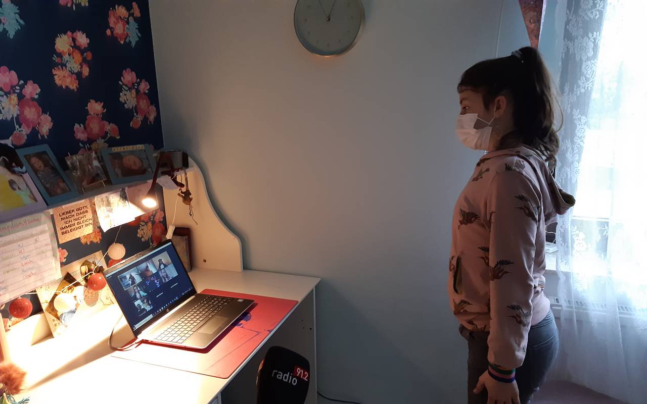 Leni ist 13 Jahre alt, lebt hier in Dortmund und normalerweise sieht ihr Alltag so aus: Schule, Reitunterricht, Chorakademie. Jetzt findet das alles – außer natürlich der Reitunterricht – in ihrem Zimmer statt: Zwischen hellblauer Blümchentapete und Mark-Forster Poster gibt es nicht nur Homeschooling, sondern auch SingWorkouts von der Dortmunder Chorakademie.