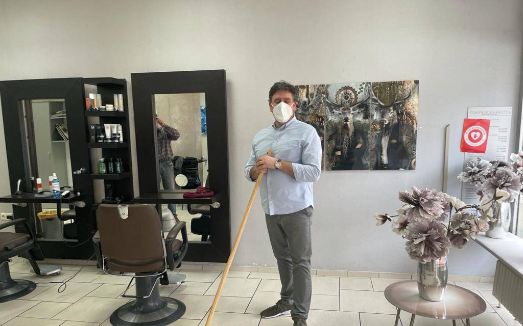 Hygienemäßig sind zusätzlich noch Masken eingekauft worden, die meisten arbeiten mit FFP 2-Masken. Claudio Buzetta hat vor dem Geschäft sogar eine Sitzbank aufgestellt für wartende Kunden und ein Waschbecken für alle Ankommenden.