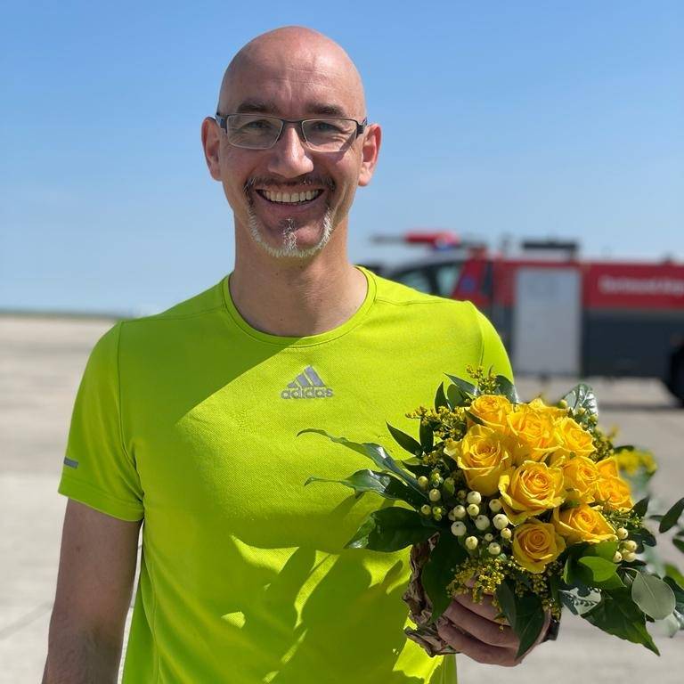 Es ist soweit: Martin Rauscher darf auf dem Flughafen-Gelände laufen. Radio 91.2-Reporter Michael Hendriks war dabei.