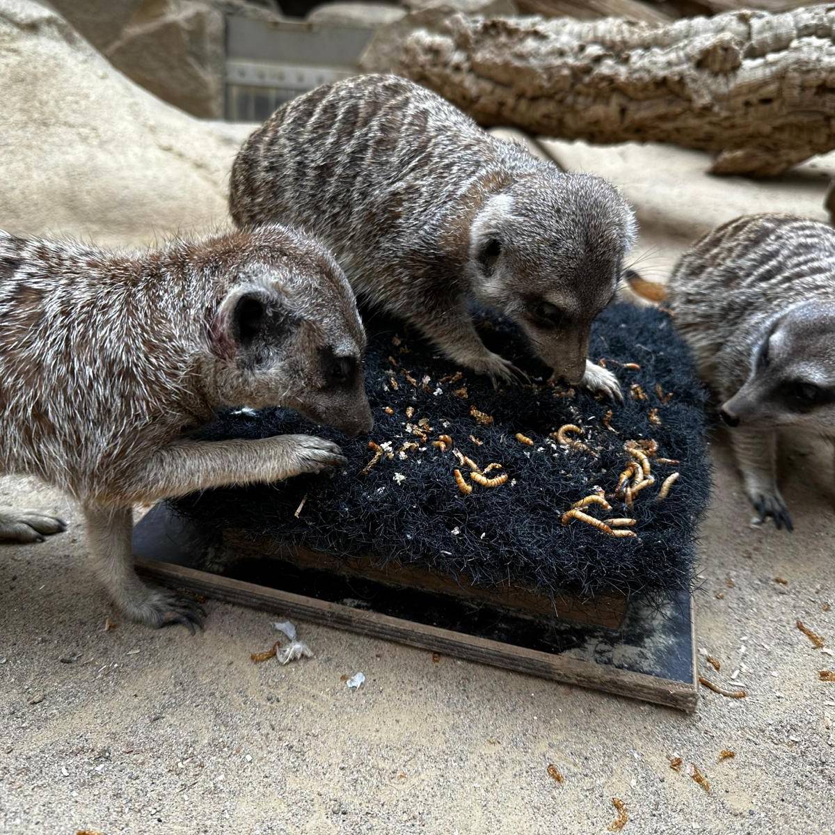 Jetzt in den Sommerferien läuft im Zoo Dortmund auch das Kinderferienprogramm. Die Kinder bauen unter anderem Futterbeschäftigung für die Erdmännchen. Das sind Boxen mit kleinen Löchern. Daraus müssen die Erdmännchen dann Mehlwürmer fischen. Eine gute Beschäftigung für die Tiere. Radio 912-Reporter Julian Schildheuer hat das zusammen mit den Kindern beobachtet.