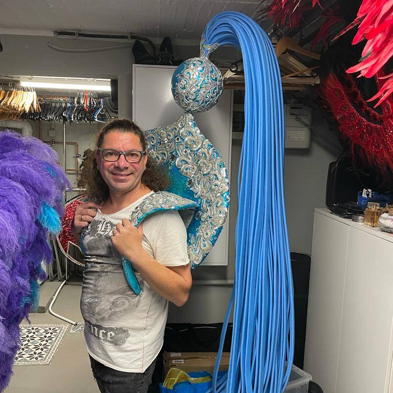 Vor 1,5 Jahren zerstörte das Hochwasser sämtliche Kostüme von Antonella Rossi und einfach alles, was er so für seine Auftritte braucht. Ausgerechnet kurz vor seinem 25-jährigen Bühnenjubiläum. Das Theater Dortmund hatte ihm aus dem Fundus mehrere Outfits geschenkt, damit er wieder loslegen konnte.