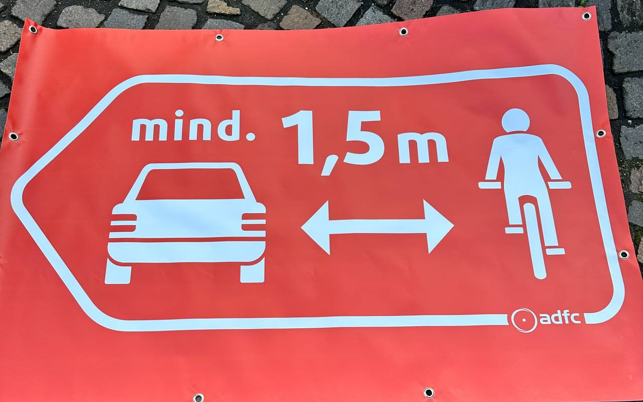 Laut Straßenverkehrsordnung müssen Autos mindestens 1,5 Meter Abstand zu Radfahrern halten, wenn sie an ihnen vorbeifahren möchten. Diese Regel gelte schon seit fast drei Jahren, trotzdem komme es immer wieder zu Unfällen, bei denen dieser Abstand unterschritten würde.