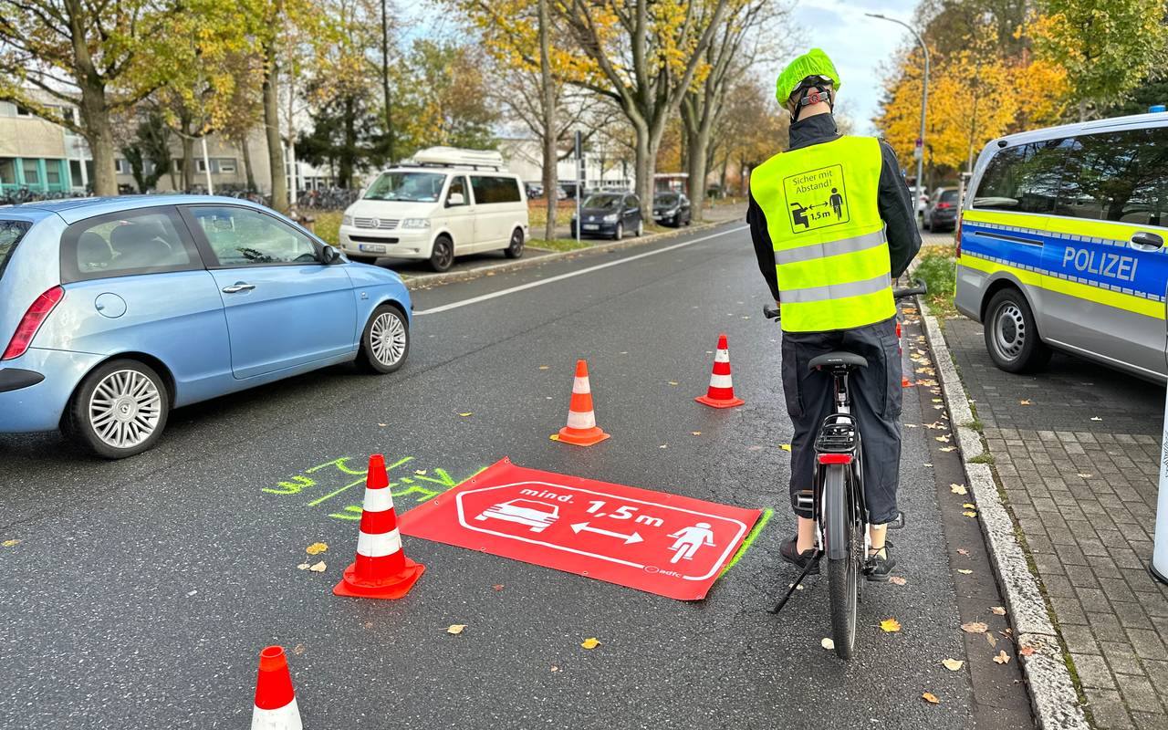 Die Dortmunder Polizei hat bei einer Gemeinschaftsaktion mit dem ADFC Autofahrer auf den Mindestabstand beim Überholvorgang hingewiesen.