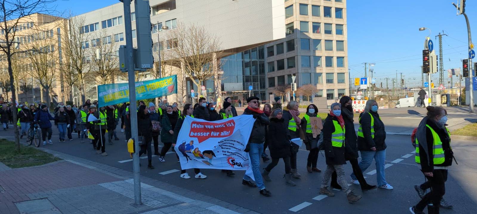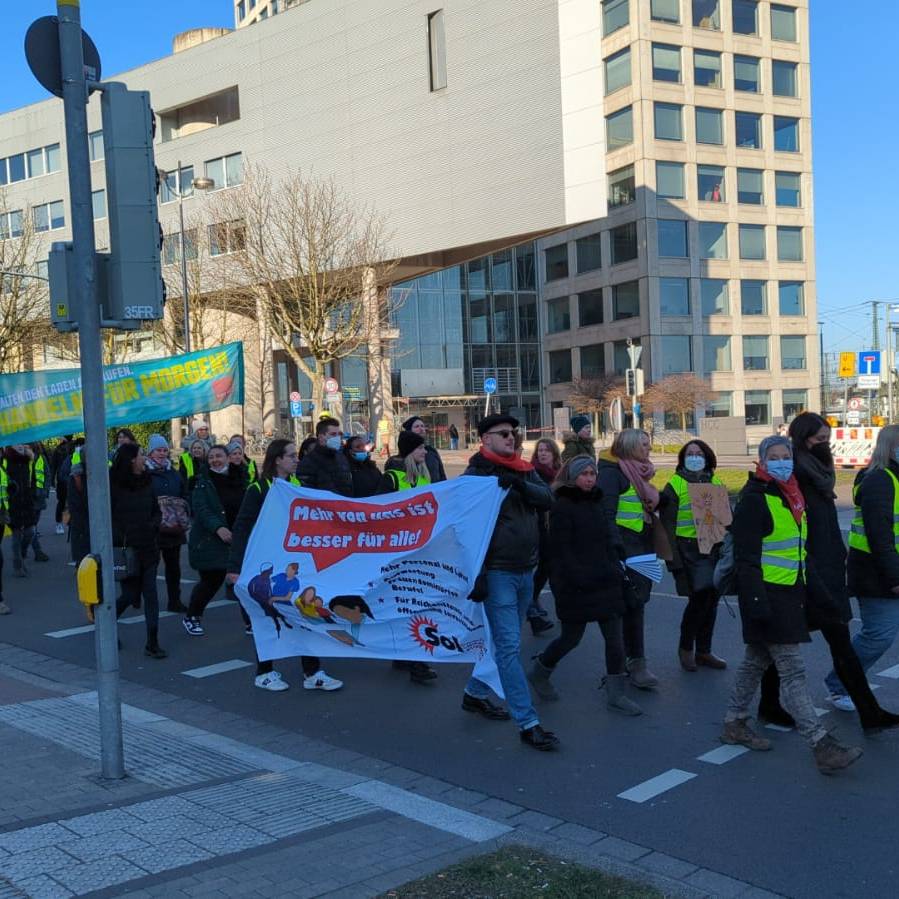 Rund 1.000 Demonstranten sind ein Mal über den inneren Ring des Walls gezogen. Auf dem Friedensplatz gab es am Vormittag eine Abschlusskundgebung organisiert von der Gewerkschaft Ver.di. Die Beschäftigten wollen mehr Geld. Je nach Beruf weichen die Forderungen aber ab.